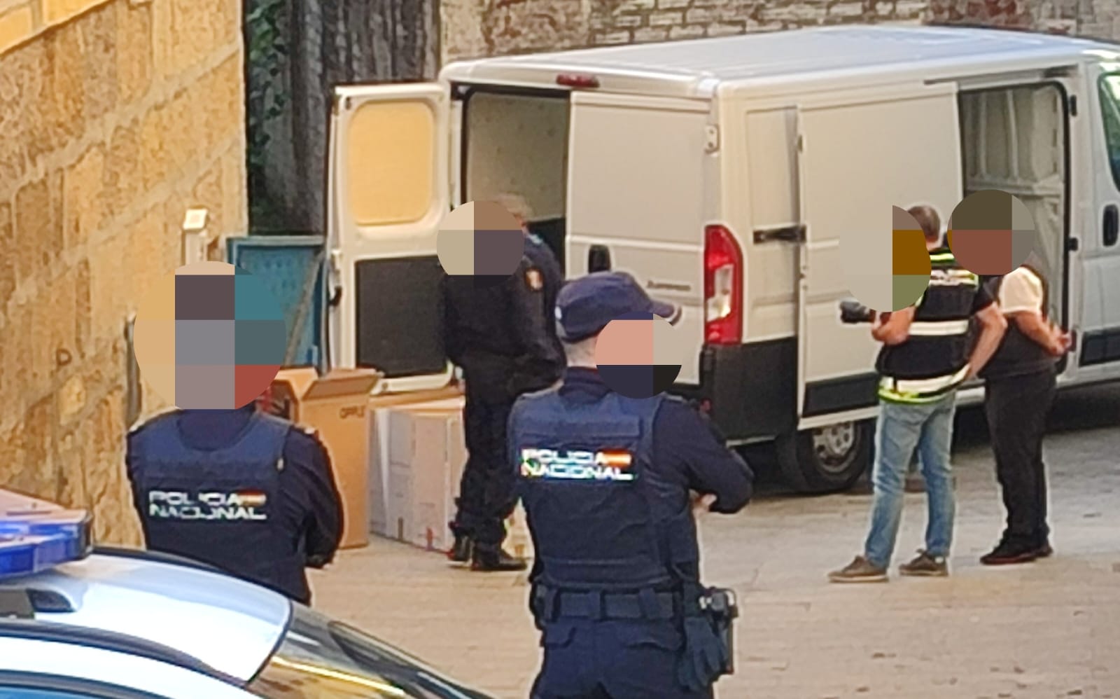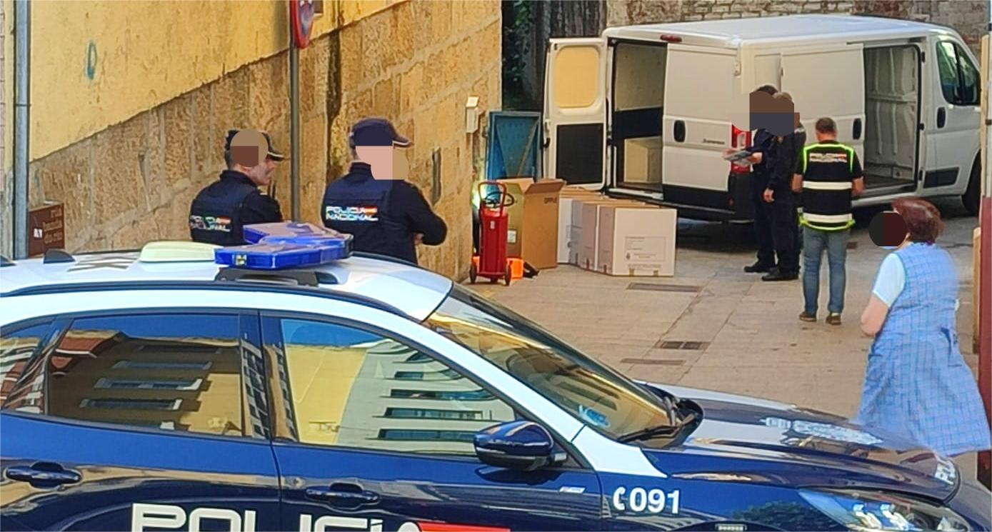 La presencia de coches policiales y agentes de la Policía Nacional en la calle Lameira provocó en la tarde de este jueves la alarma de algunos vecinos que han ido viendo como de un local de la zona fueron extraídas cajas con material potencialmente peligroso