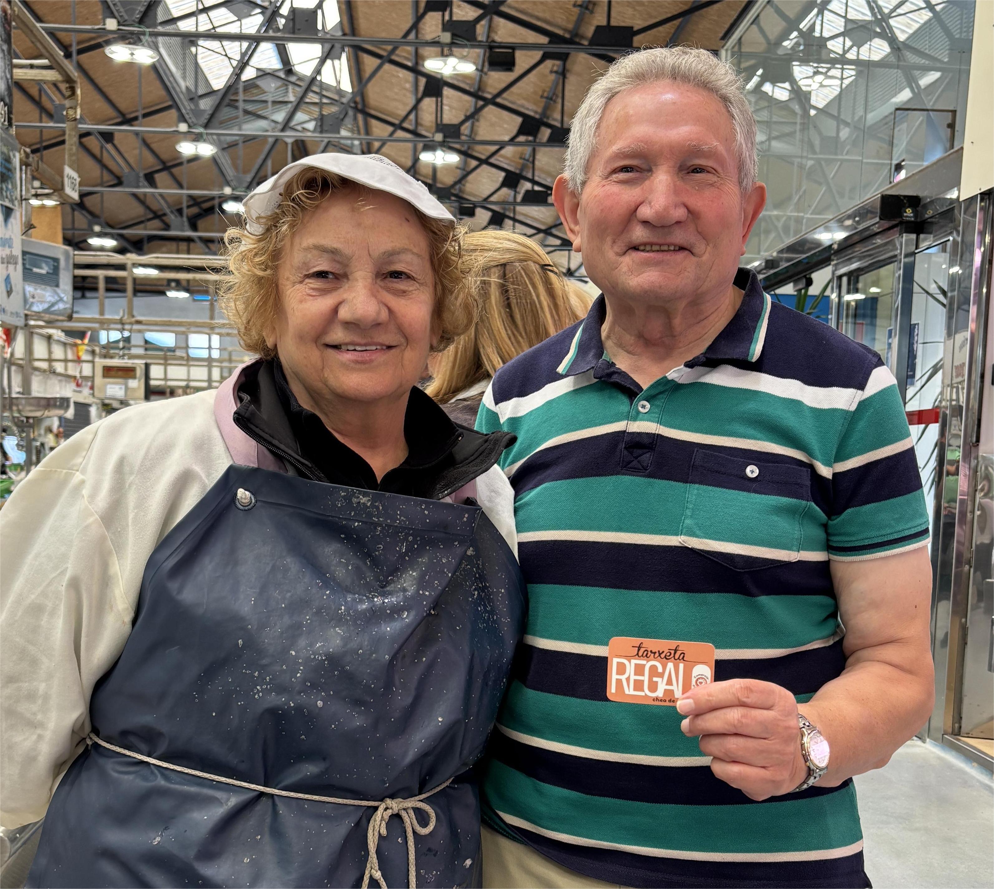 Samuel Area Santiago resultó ser el ganador del sorteo celebrado en el propio mercado y el agraciado cliente del recinto municipal deberá gastar el importe del mismo en el establecimiento donde selló su tarjeta de compra, “Pescados Mallo” donde se le hizo entrega del cheque ganador de manos de la vendedora del puesto, Antonia Mallo.