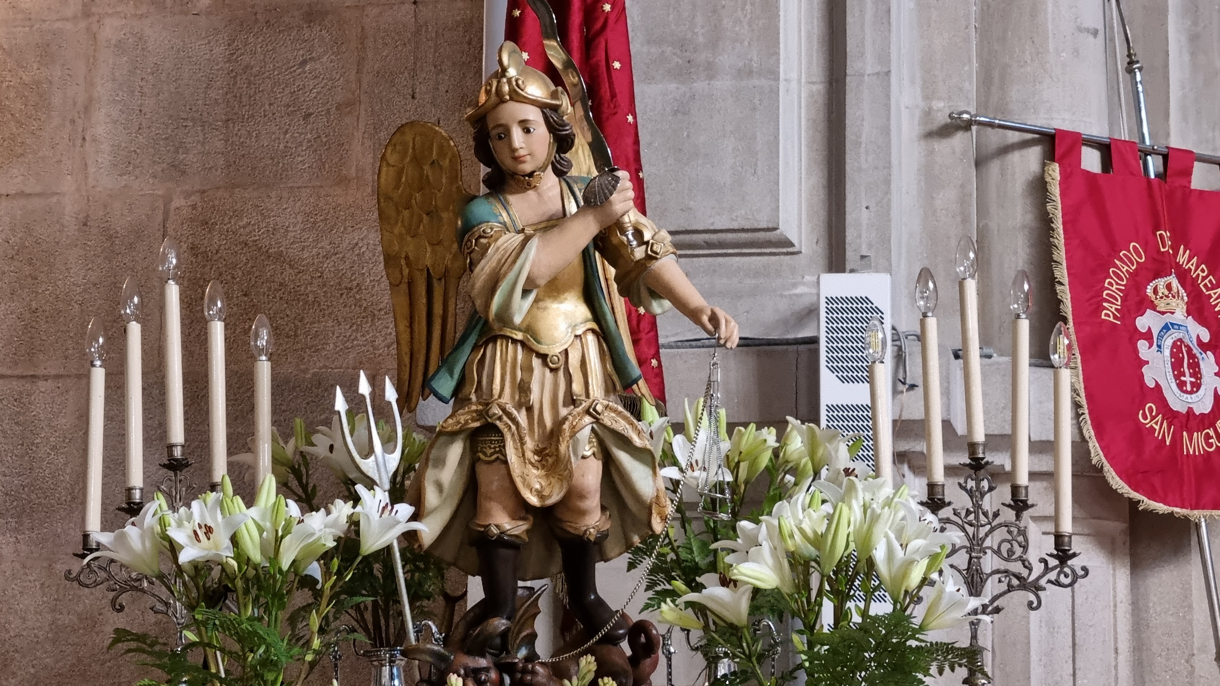 Terminado el acto institucional se armará la comitiva que recorreráel trayecto entre el concello y el Nuevo Templo para asistir a la Misa de San Miguel en la que cantará el