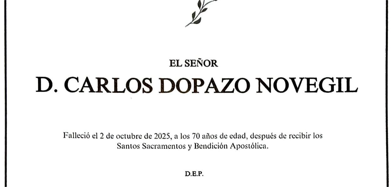 La funeraria SAN MARCOS comunica el fallecimiento de Don CARLOS DOPAZO NOVEGIL, cuyos restos mortales permanecerán en el tanatorio San Marcos de Marín, sala número 1, hasta el momento de su traslado, mañana SÁBADO día 4, a las DIEZ Y MEDIA de la mañana al cementerio municipal de O Campo.