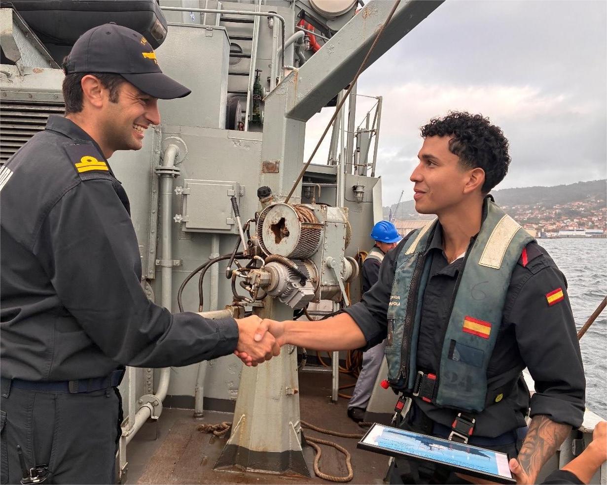 Uno de los marineros, futuro suboficial, despedido por el comandante del Tabarca