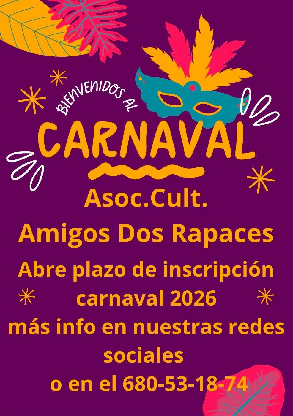 Y por eso, la asociación “Amigos dos Rapaces”, que tiene una importante colaboración en el programa municipal del Entroido siempre, así como en otras ocasiones por distintos motivos a lo largo del año, están ya preparándose para organizar sus actividades por lo que hace un llamamiento a quienes quieran participar con ellos en las misma que se inscriban a la mayor brevedad posible porque lo importante en esto casos en madrugar y hacer las cosas con calma y sentido.
