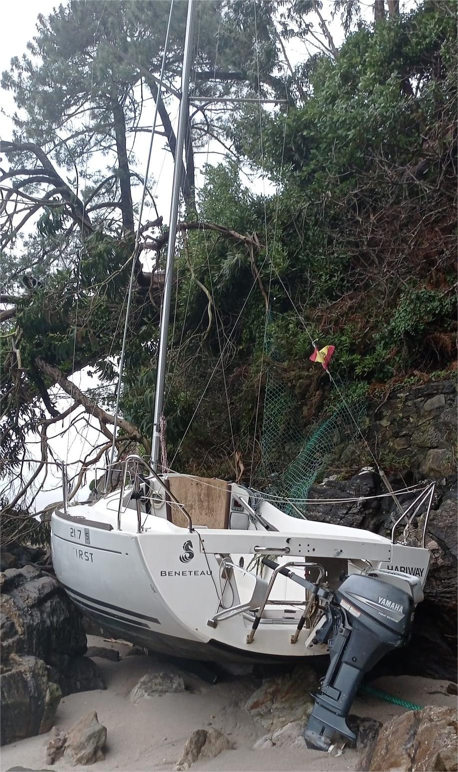 Que lo del pseudopuerto de Aguete no tiene remedio es una realidad. Lo que iba a ser el primer puerto deportivo de la ría hace muchos años, se quedó, viendo crecer otros en ambas orillas, en un fondeadero inseguro en el que los barcos que allí flotan apaciblemente durante casi todo el año, corren el peligro de, cuando llega algún temporal, irse a la playa o, como le pasó a este que aparece en la fotografía, directamente a las rocas con la marea alta.