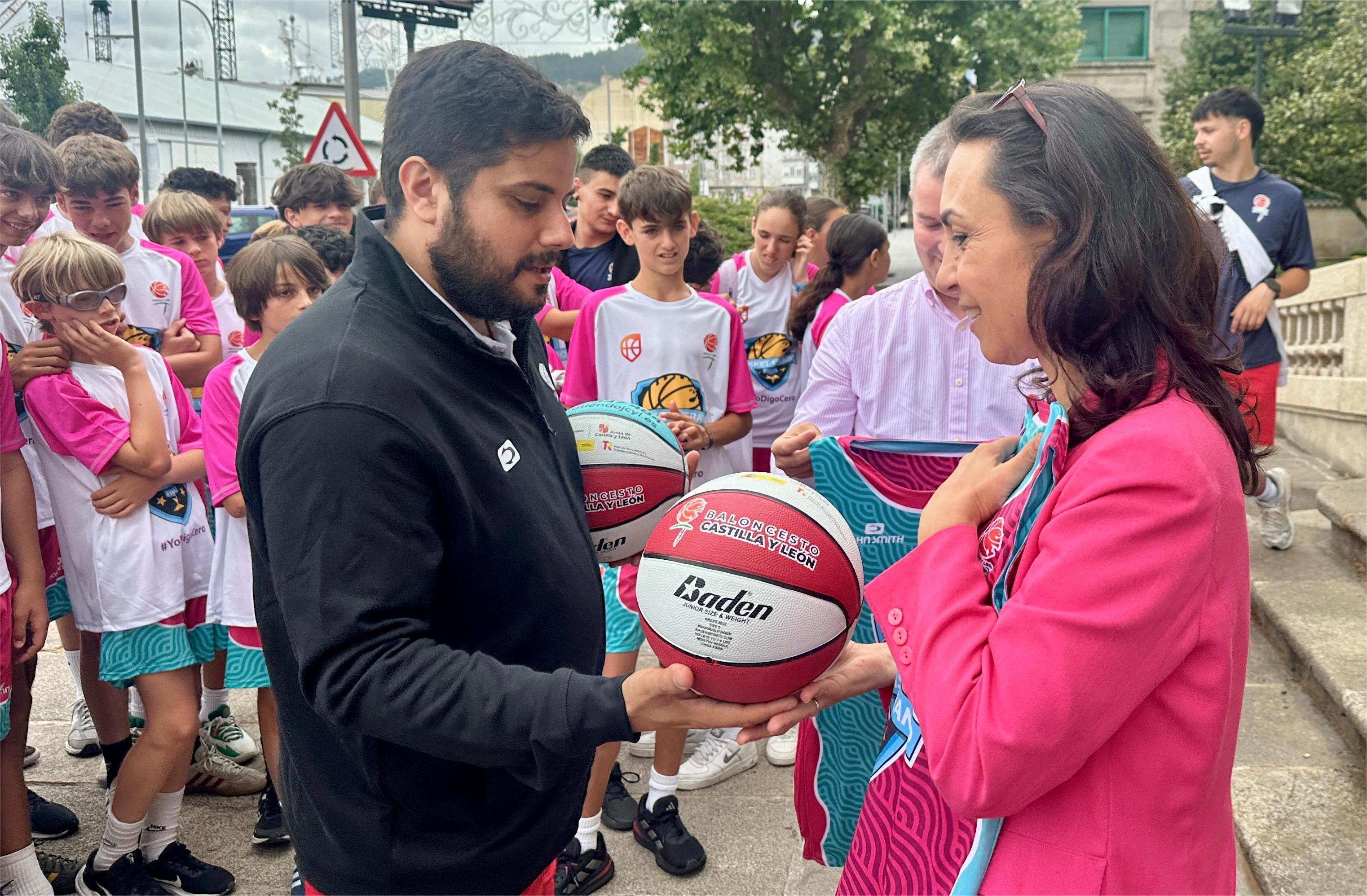 En nombre de la Federación castellana, el director del campus hizo entrega de un balón de baloncesto a la regidora municipal como símbolo de su agradecimiento por la buena acogida de Marín al grupo que nos visita.