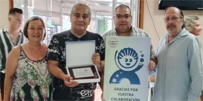 Fue Manuel Area, presidente de Botón de Ancla, quien entregó a Carlos Leiro, homónimo de “Stop” que acudió a la comida acompañado de varios miembros de su junta directiva, una placa de agradecimiento y un cuadro alegórico de la colaboración que ambas asociaciones se prestan.