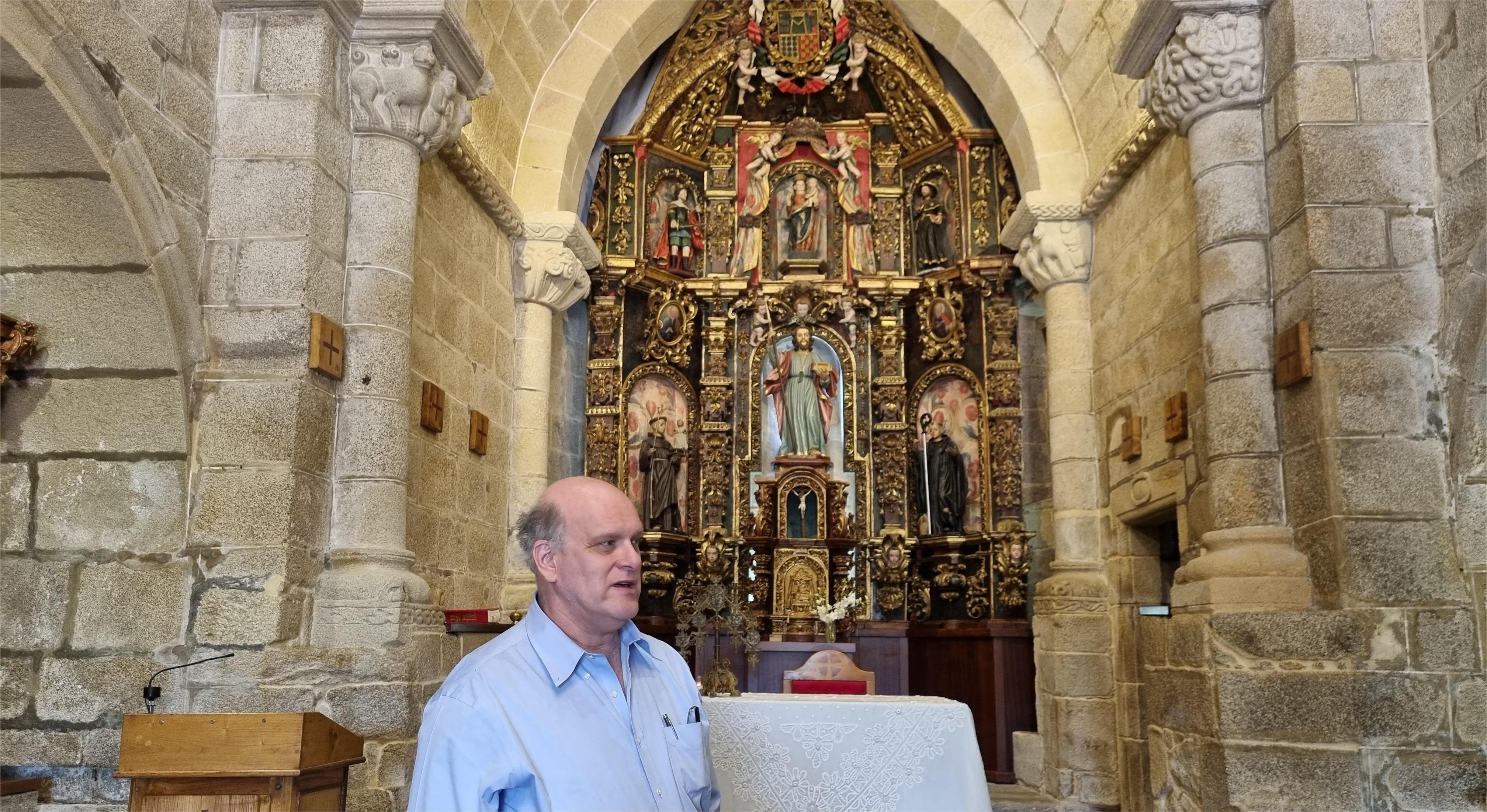Gonzalo S.Paz visitó la Escuela Naval compartiendo con el director Cardona Suanzes un almuerzo y también estuvo con María Ramallo en la alcaldía, y hemos tenido la suerte de vivir con él el emocionante momento de encontrarse en el interior del tesoro románico de la Iglesia de Santo Tomé de Piñeiro donde fueron bautizados sus antepasados, monumento que, además de la emoción propia de ese reencuentro, le impresionó por su belleza y su conservación.
