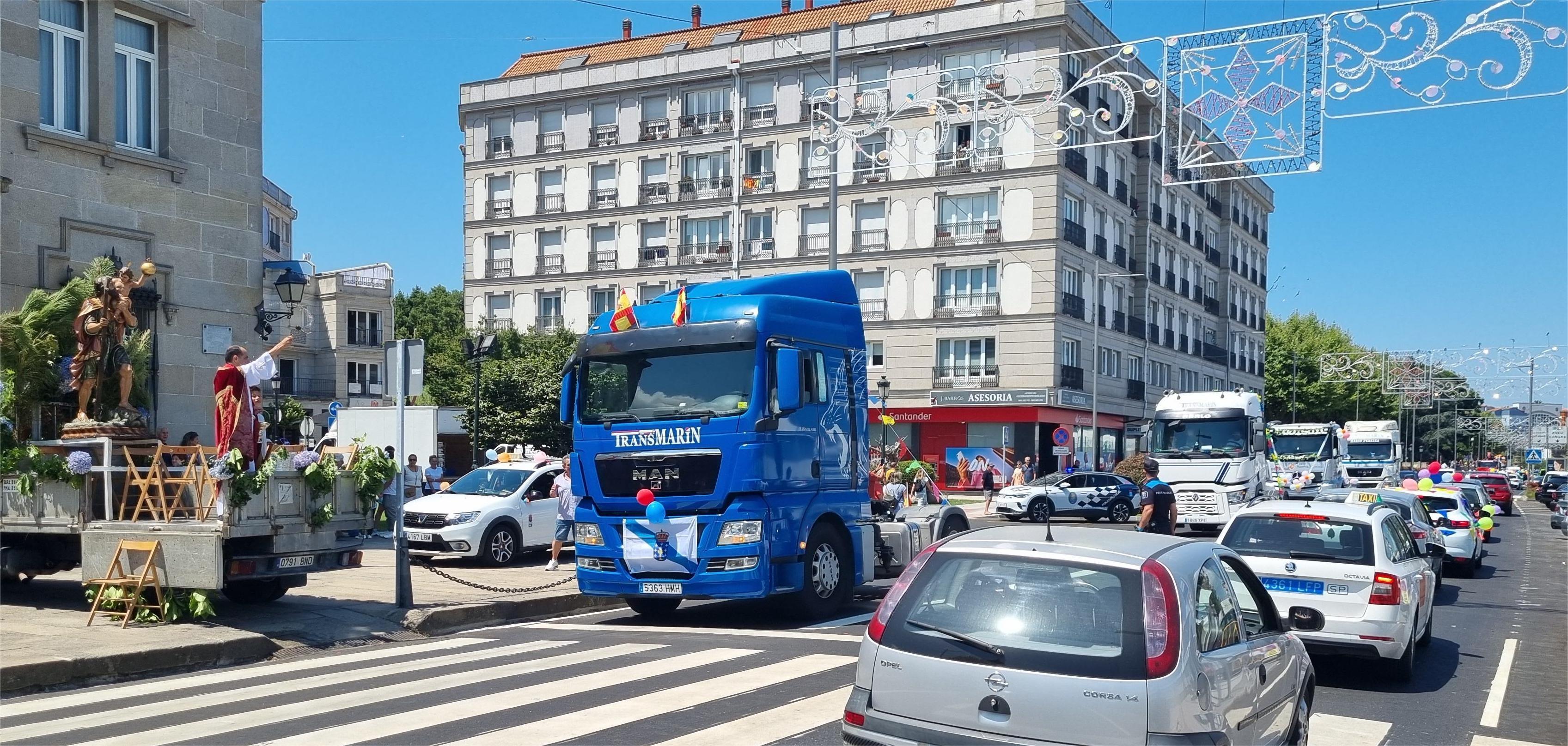 La jornada dedicada a San Cristóbal reunió a numerosos vehículos muchos de ellos adornados en una procesión a cuyo paso por la Avenida de Ourense, ante el Concello, recibieron la tradicional bendición