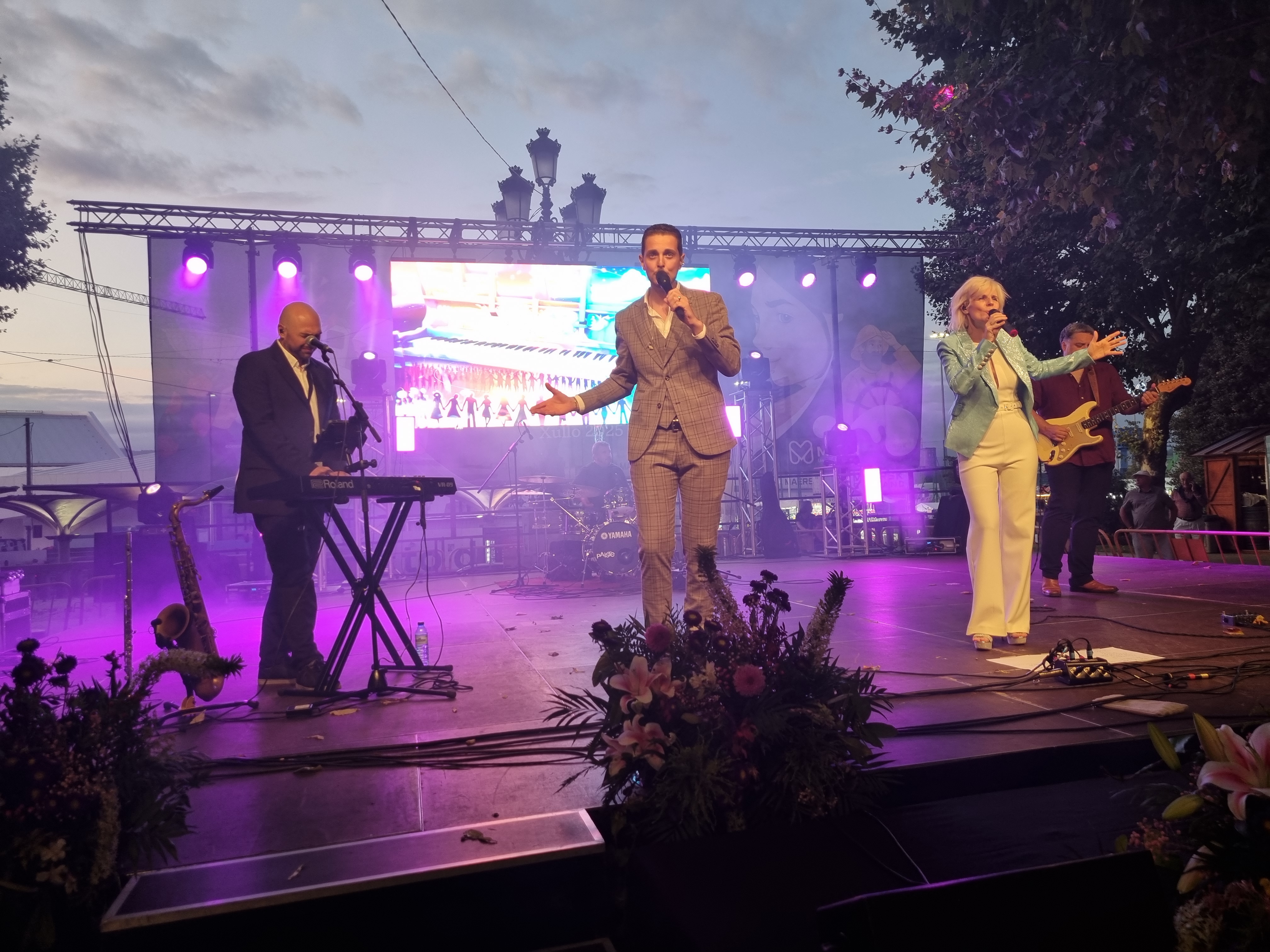 El numeroso público asistente no se movió de sus asientos y aún se incrementó notablemente cuando se inició de inmediato el concierto “Xuntos pola Música” que durante más de dos horas hizo un recorrido por la obra musical del cantante Juan Pardo con la interpretación de su hija Lys Pardo y Antonio Barros. El público agradeció con muchos aplausos esa sesión musical que precedió a la verbena con la orquesta “Origen”.