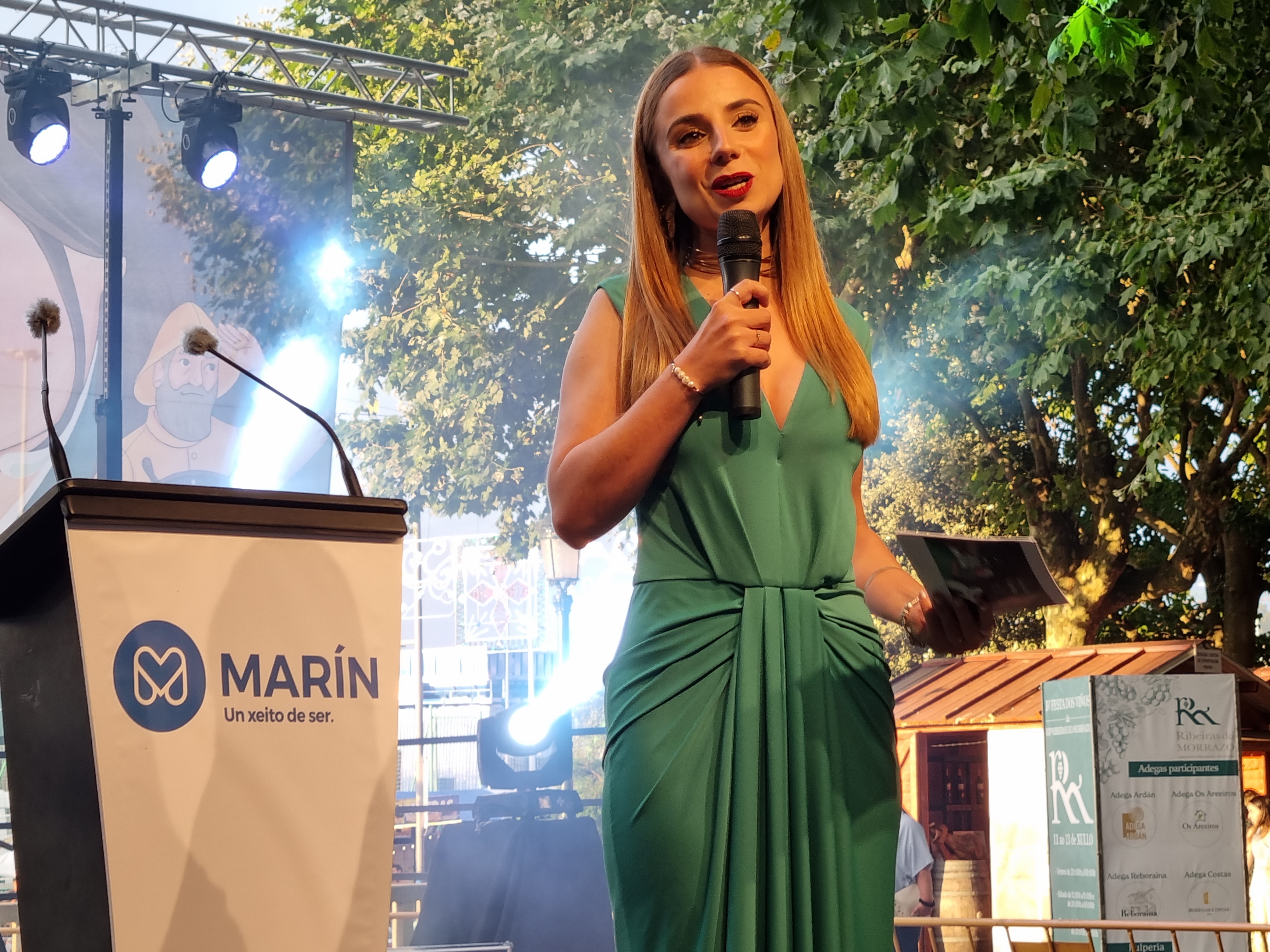 La réplica llegó a continuación con la intervención de María Ramallo quien tras saludar a vecinos, vecinas y a las autoridades y representaciones presentes empezó considerando “Como se nota que en Marín arrancamos as festas, festas para vivilas, para sentilas e para cantalas, como este espectacular pregón que acabamos de vivir da man dos Saljariteiros que son xente á que paga a pena homenaxear e escoitar e aquen teño que dar as gracias por “ poñerlle ás Festas do Carme o mellor dos inicios posibles! O voso pregón foi un reflexo exacto do que sodes: alegría, amizade, comunidade, cultura popular, sentido de pertenza e… sobre todo… ORGULLO DE MARÍN! Porque sodes embaixadores inigualables, porque ademais, grazas ás vosas voces e alegría, o nome de Marín vai sempre unido á positividade e á forza, dúas características que nos definen”.