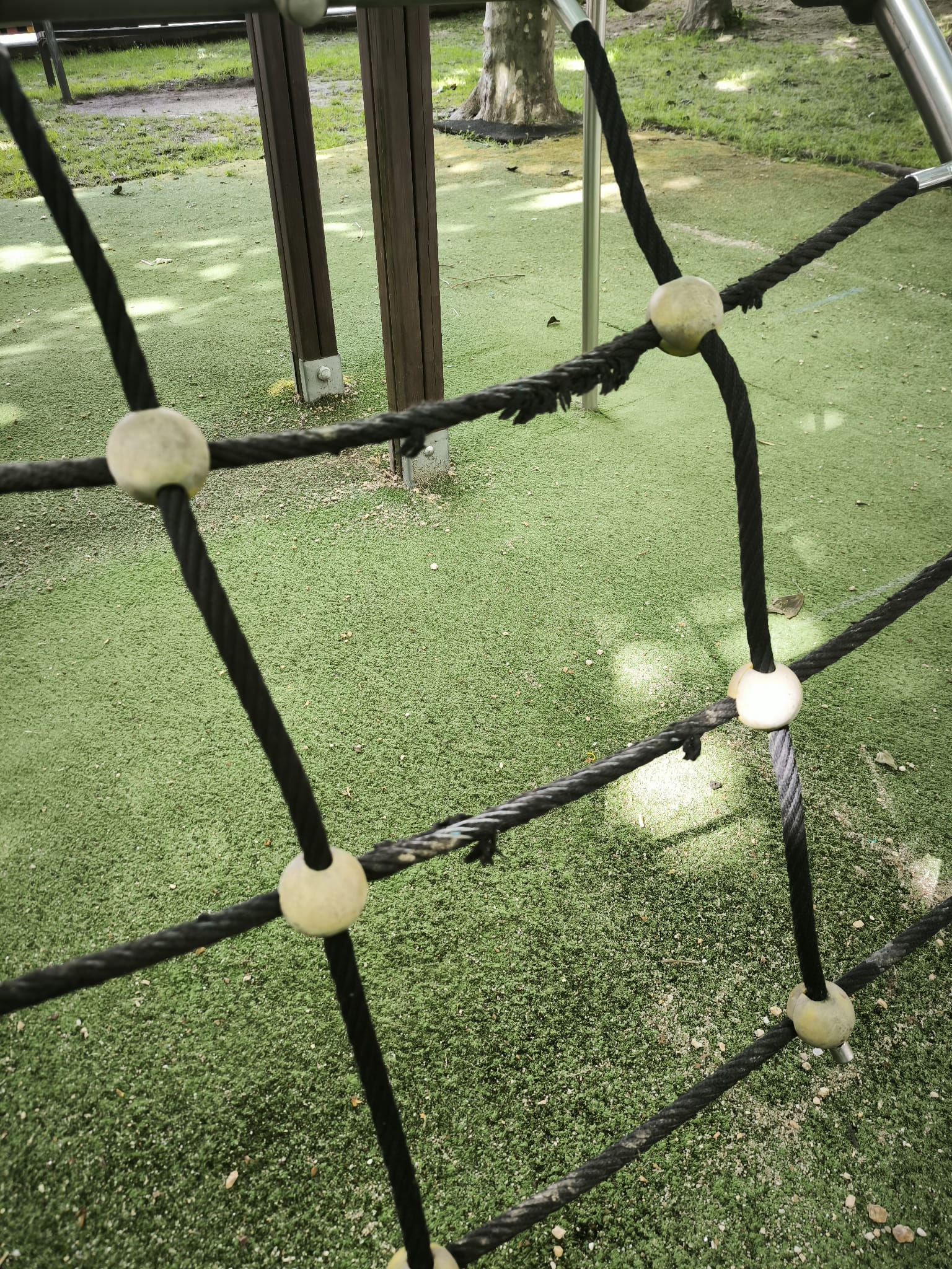 necesarias pola presenza de estruturas de madeira podres e con risco de rotura, cordas de escalada soltas ou a piques de romper, buracos no chan e elementos totalmente deteriorados. Co perigo real de que a rapazada sufra danos. É incríbel que este parque siga aberto nestas condicións..