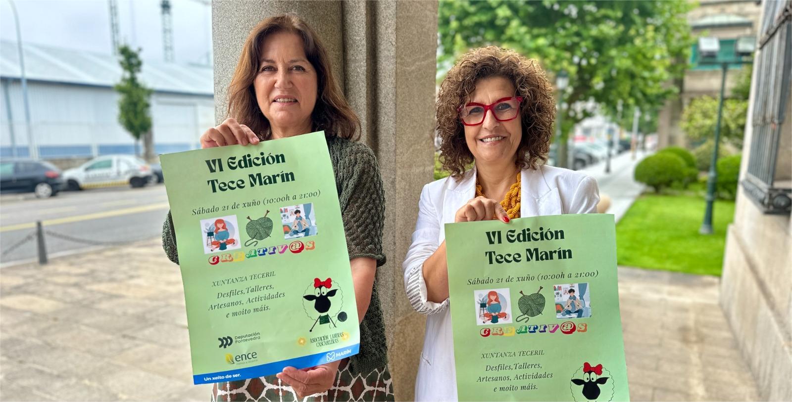 Mela Graña, presidenta de la asociación “Laneras Cascabeleras” presentó ayer, junto con la concejala de comercio y turismo, Cristina Acuña, el cartel que recoge la programación de la concentración de tejedoras que tendrá lugar mañana sábado en la alameda Rosalía de Castro