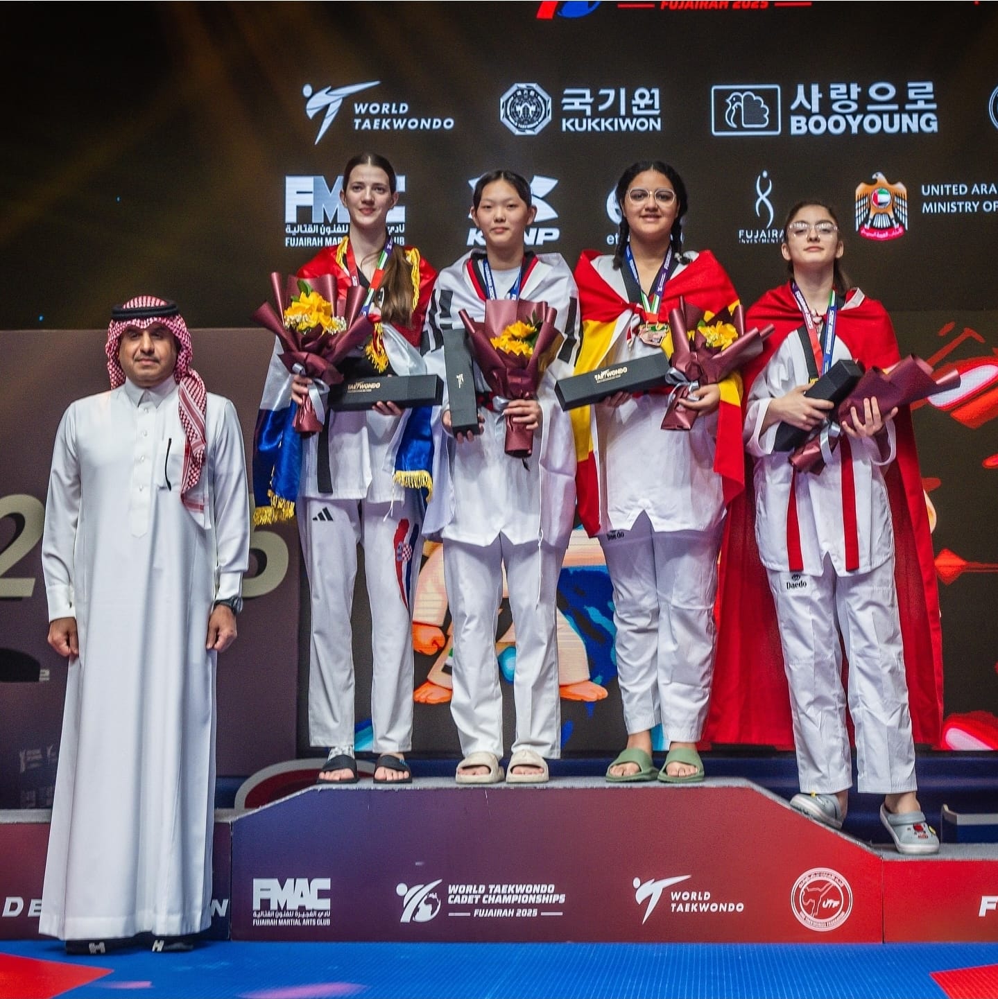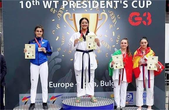 No hace ni una semana que Ángela Balado conseguía la medalla de bronce en Emiratos Árabes en los campeonatos mundiales de Taekwondo, y hoy mismo, en Sofía (Bulgaria), la rapaza marinense del club Mat´s, nos regala nada menos que la medalla de oro en la “President Cup European” conseguida esta mañana tras derrotar en primer lugar a la griega Christopulou en tres asaltos; en semifinales a la española Jessica González que venía de vencer a la británica cabeza de serie, deshaciéndose de ella en dos asaltos para encontrarse en la final con otra española, Alicia Palomino que había eliminado a la turca y a la italiana, cabeza de serie número 1, Serena Ascenzi. Dos asaltos le bastaron para ganar la final y colgarse una nueva medalla, nada menos que la de oro, dejando además la estela de una verdadera campeona a la que a partir de ahora todos tendrán en cuenta.