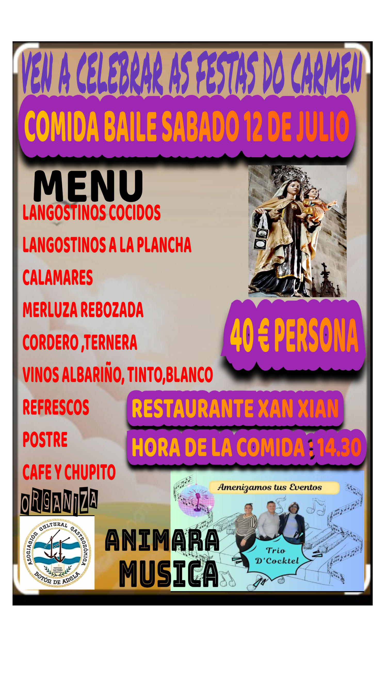 La asociación “Botón de Ancla” madruga en la organzación de uno de los eventos más compartidos por sus asociados y simpatizantes como es el del almuerzo de las fiestas del Carmen, consciente la junta directiva del colectivo del interás de muchas familias para participar lo que hace siempre insuficiente el recinto del restaurante “Xan Xián” dada la demanda a veces tardía de plazas para asistir al evento.