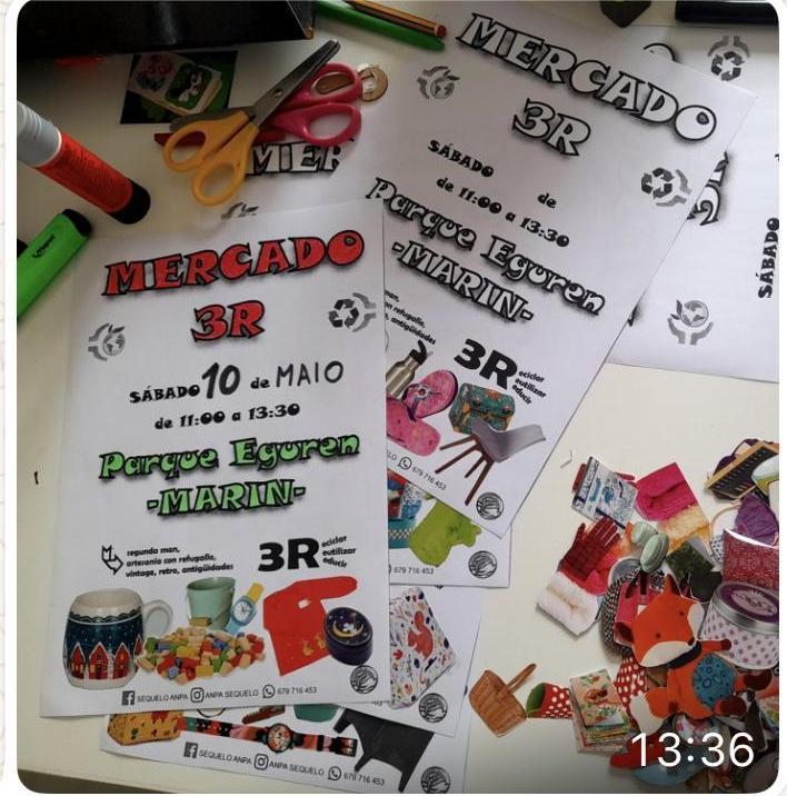 La Asociación de Madres y Padres del colegio “Sequelo” pondrá en marcha el próximo sábado día 10 en el Parque Eguren, un mercado 3R en el que se ofrecerán artículos de segunda mano evitando su deterioro o la contaminación de su abandono
