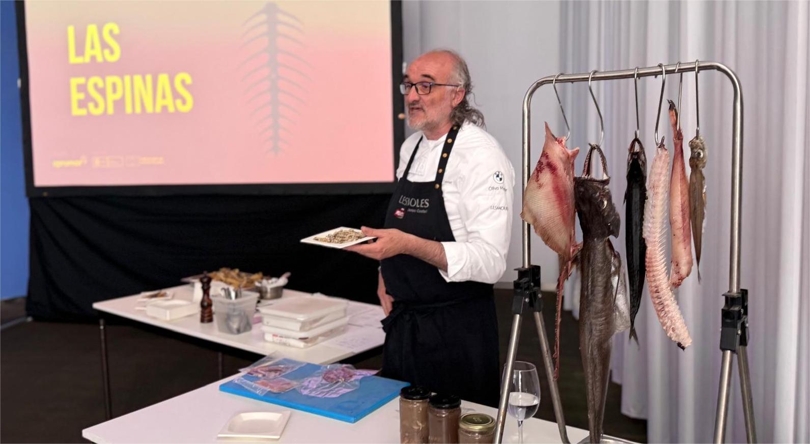 Jeroni Castell, del restaurante Les Moles, que ofreció una charla-taller dirigida a detallistas de pescado, escuelas de hostelería, organizaciones de consumidores y representantes de la administración. El evento incluyó una degustación de elaboraciones basadas en partes tradicionalmente infrautilizadas, como pieles, huevas o hígados.