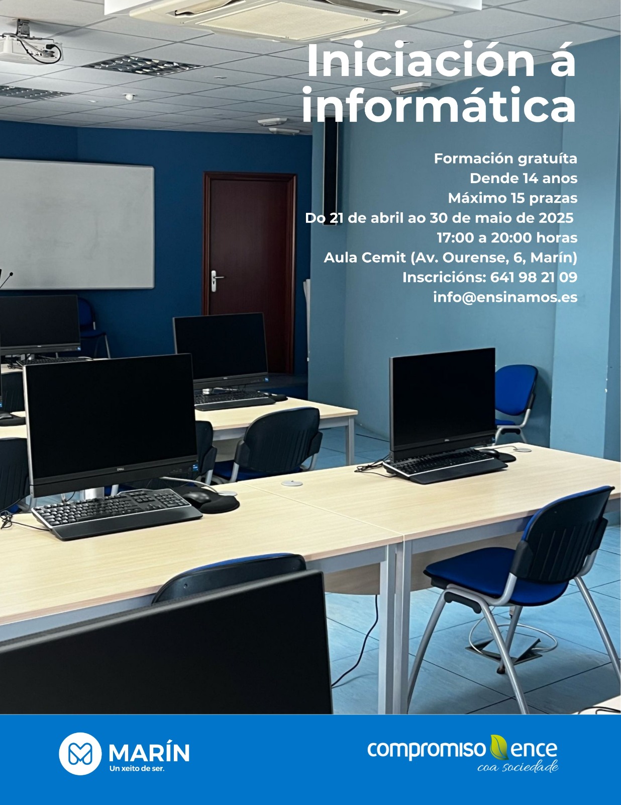 Según comunican desde el ayuntamiento, “O Concello de Marín, en colaboración coa empresa Ence, organiza un curso gratuíto de iniciación á informática que terá lugar na Aula Cemit, situada no piso superior da Biblioteca Municipal de Marín, na Avenida de Ourense, curso que forma parte da campaña "Compromiso Ence coa Sociedade", unha iniciativa patrocinada por Ence que busca mellorar as competencias dixitais da cidadanía marineense e fomentar a inclusión tecnolóxica na nosa comunidade”.