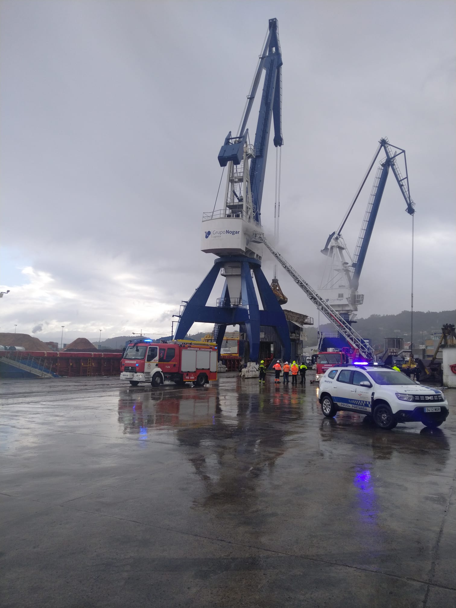 El Puerto de Marín se despertó hoy con la alarma de un incendio producido, al parecer, en la maquinaria de una de las grúas del Muelle Leirós por motivos, según estimación previa, de algún fallo técnico en la instalación de la misma.