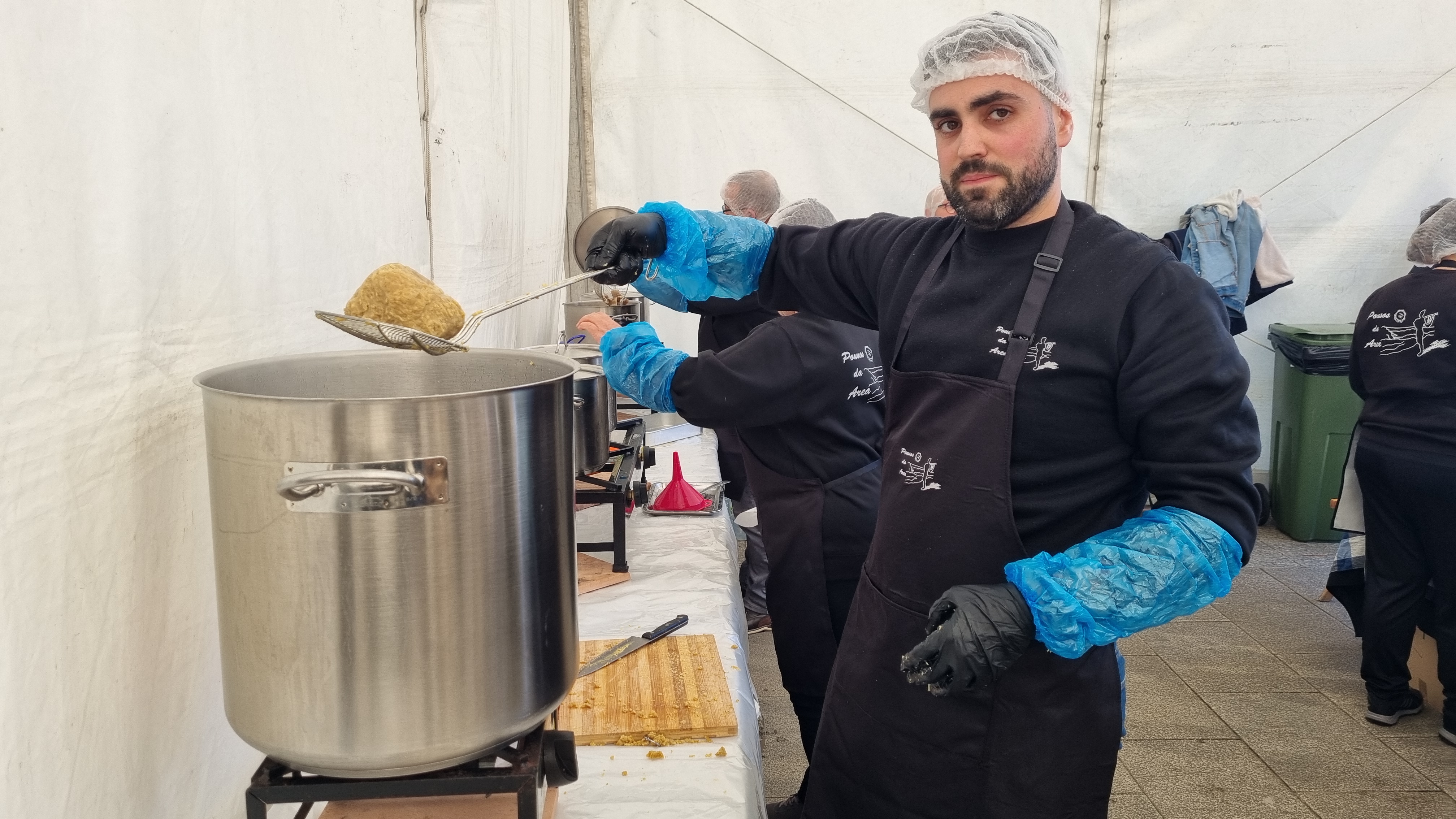 Y con buen criterio, a nuestro juicio, se hace coincidir aún a pesar de retrasarlo un a semana, la fiesta del “Bolo do Pote” para que sirva, además de cumplir la tradición de finales del Entroido marinense, con la oportunidad de ofrecer un avituallamiento de final e paseo a los participantes en la andaina y al público en general. La asociación “Pousos da Area” es la encargada, desde hace varios años, de llevar adelante esta fiesta gastronómica y cumple extraordinariamente bien con su cometido y la prueba está en que los más de mil asistentes a la fiesta salieron contentos con la degustación del “pote” y sus añadidos propios del plato cubre de nuestro invierno.