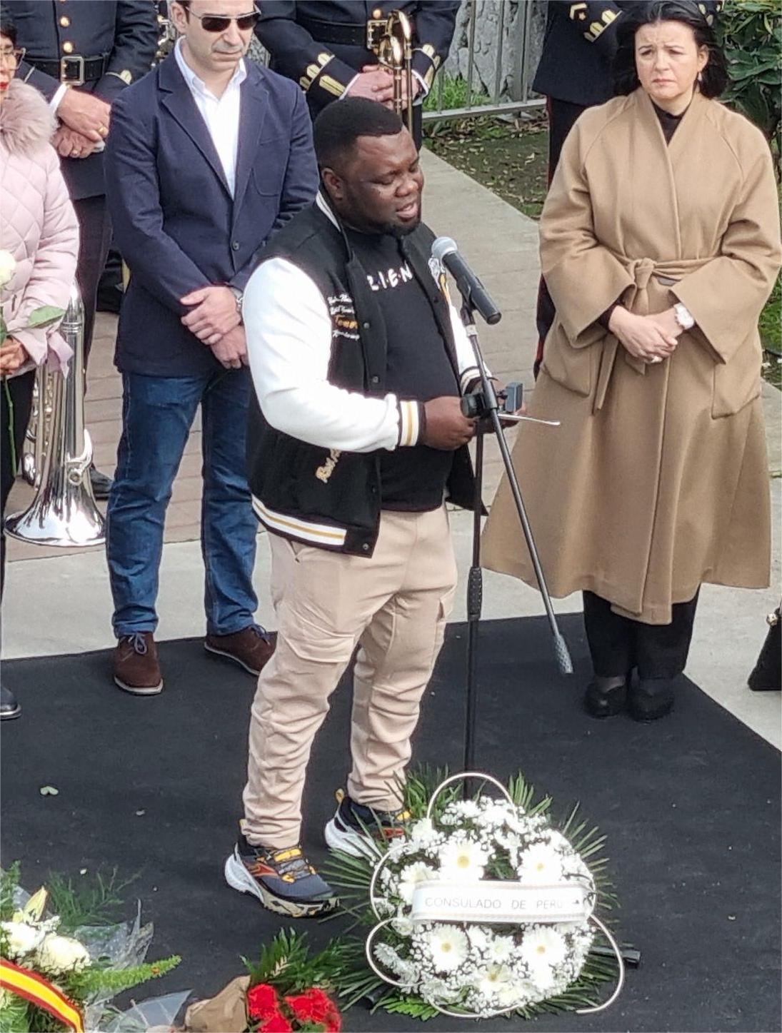 Koufie tomó la palabra visiblemente emocionado pero con gran entereza manifestó que aquella condecoración no era para él sino para todos sus compañeros de los que se acordó especialmente en este acto pero aseguró que no puede dejar de pensar en ellos y en la circunstancia vivida aquel aciago día 15 de febrero de 2022. Los asistentes premiaron a Samuel con prolongados aplausos que el joven ghanés recibió con la mayor emoción.