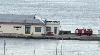 A primeras horas de la mañana el tejado de la nave ubicada en el muelle de torpedos, donde atraca el Juan Sebastián de Elcano cuando se encuentra en Marín, empezó a arder al parecer por causa de una chispa del soplete con el que se estaba realizando una reparación de la cubierta. La propagación del fuego puso en alerta y en movimiento a los bomberos de la propia institución militar que sofocaron el conato de incendio y, cuando llegaron los bomberos civiles, ya estaba prácticamente resuelto el problema aunque aseguraron el remate de la faena por lo que la cosa quedó en un susto y pocas pérdidas