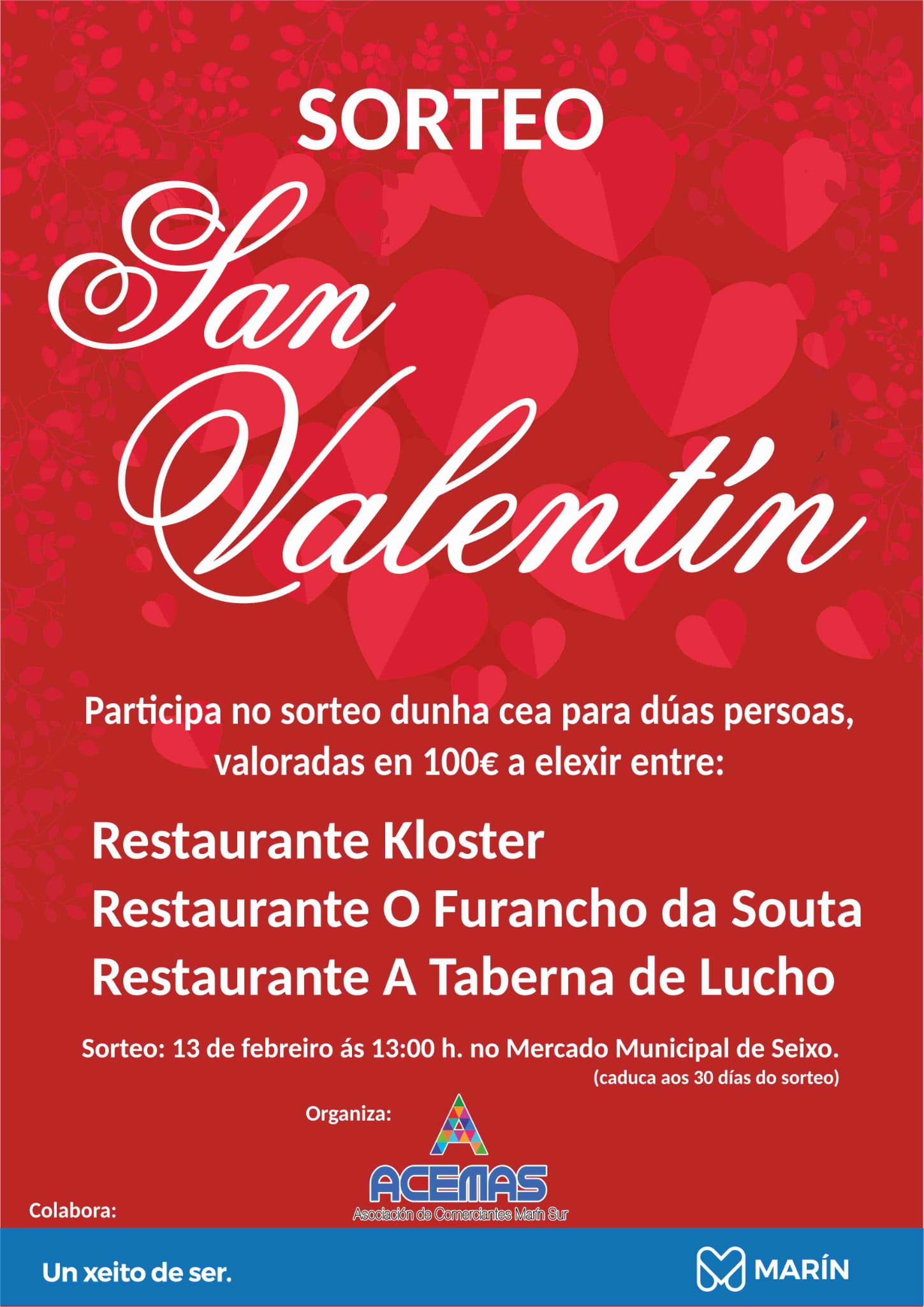 San Valentín es un buen motivo para promocionar el comercio y, la asociación comercial de Seixo y entorno, “Acemas”, con la colaboración del Concello, no pierde la ocasión de hacerlo con el sorteo de una cena en el que la persona agraciada podrá elegir restaurante