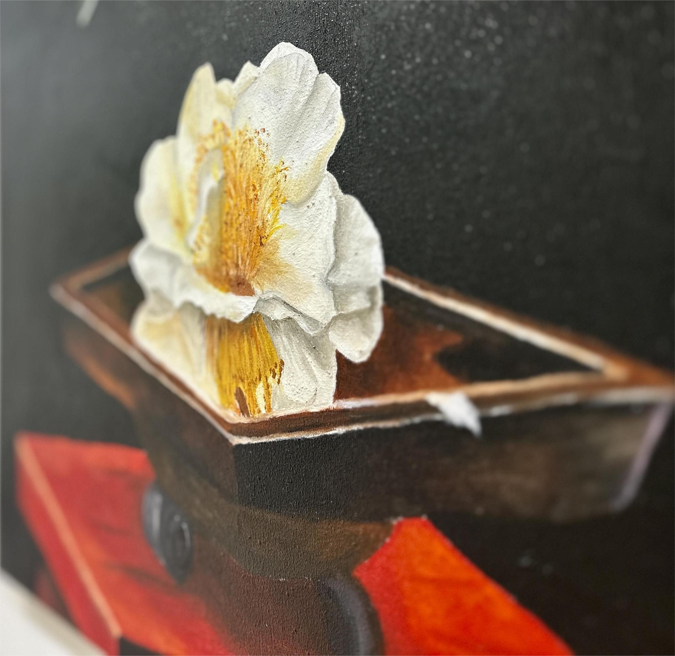 Cris Barreiro retrata con su especial técnica algunas de las camelias más bonitas en sugerentes escenarios mientras que,