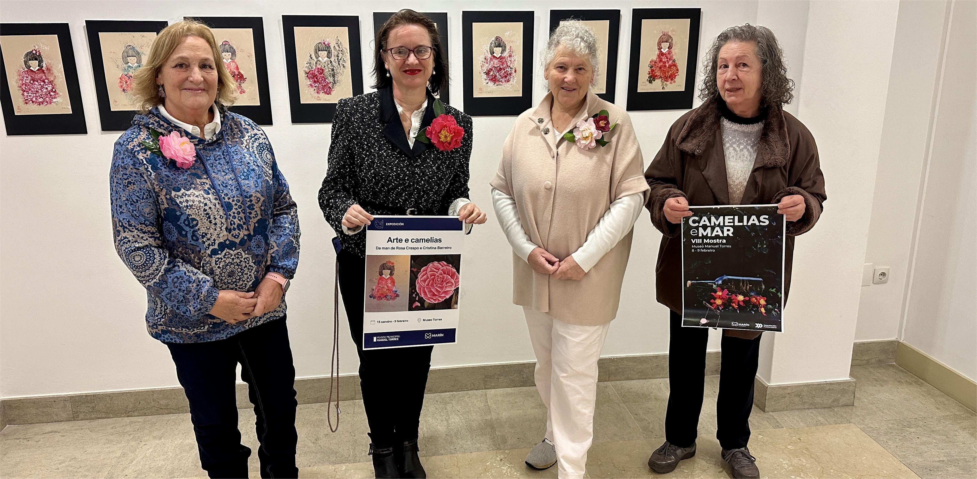 Los dias 8 y 9 de febrero serán las fechas de celebración de la tradicional exposición y exaltación de la camelia que se celebra cada año en las instalaciones del Museo Torres pero, desde ayer se encuentra abierta al público otra muestra artística de trabajos sobre el mismo tema de Cristina Barreiro y Rosa Crespo