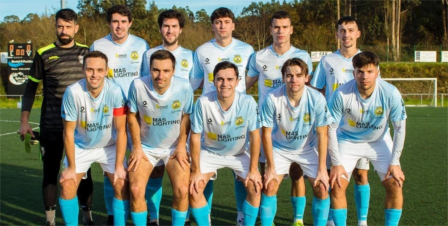 Marín Club de Fútbol : Cristian ; Darío Ferradás , Angel García , Pablo Portas , Nico ; Pedro Espiña ( Hergen , min. Min. 88 ) , David Veiga , Antón Vázquez , Manu Veiga ; Dani Taracido ( Xocas , min. 66 ) y Guille .