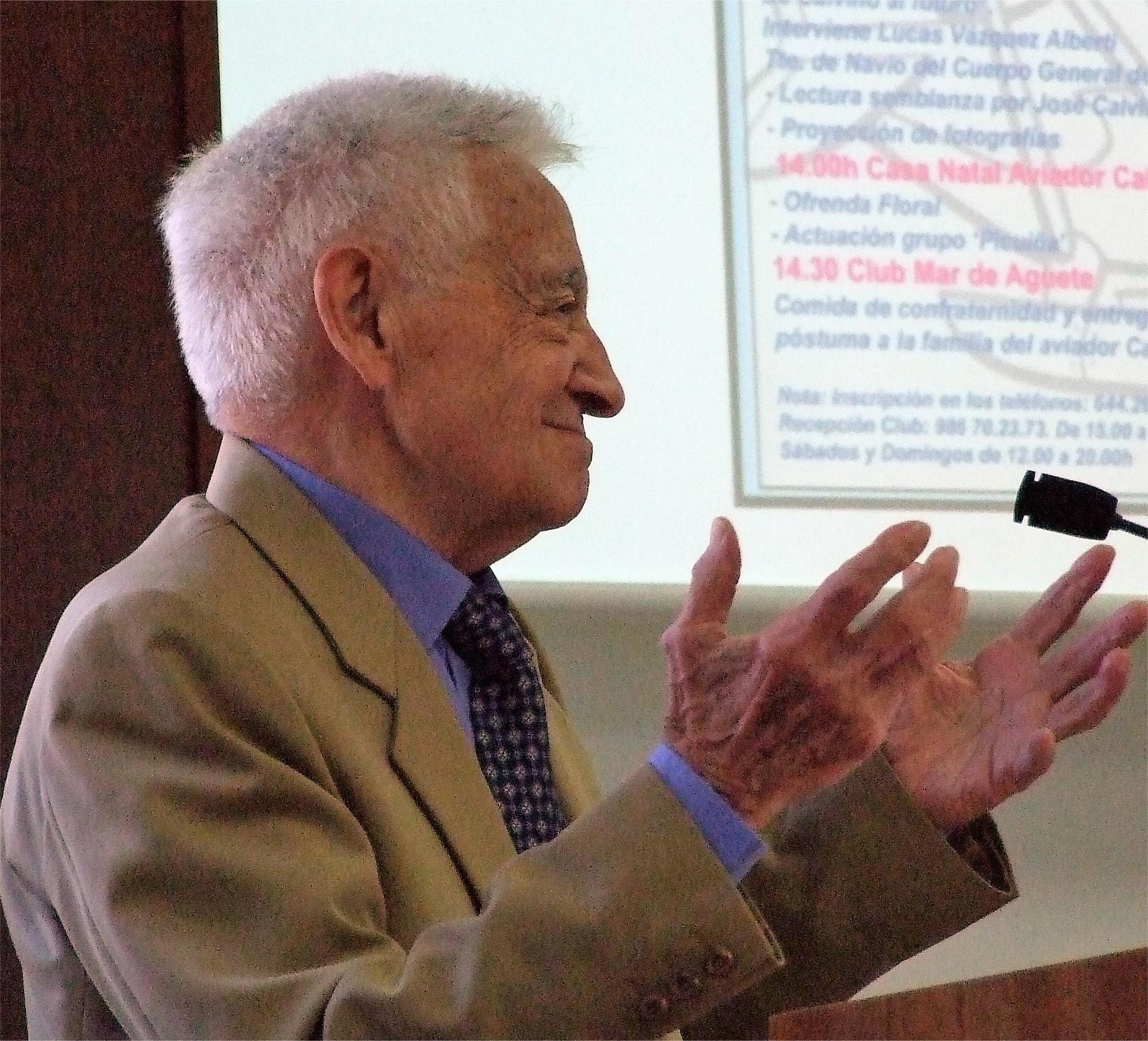 José Calviño interviniendo durante un homenaje de "Facendo Historia"