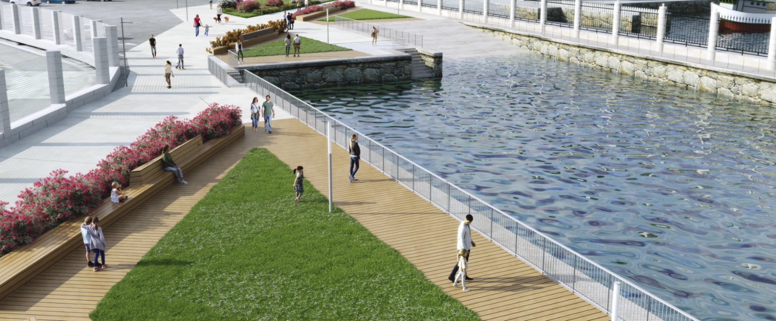 Este proyecto pretende, por tanto, según añaden en la explicación “Rematar esa unión, despois de que tamén mellorásemos a beirarrúa que transcorre paralela á Escola Naval Militar, ganando un novo espazo para a veciñanza e renaturalizando o que será o entorno máis directo coa propia dársena, con zonas verdes e mobiliario público novo e será un gran espazo peonil de formigón pulido, seguindo a estética do paseo”.