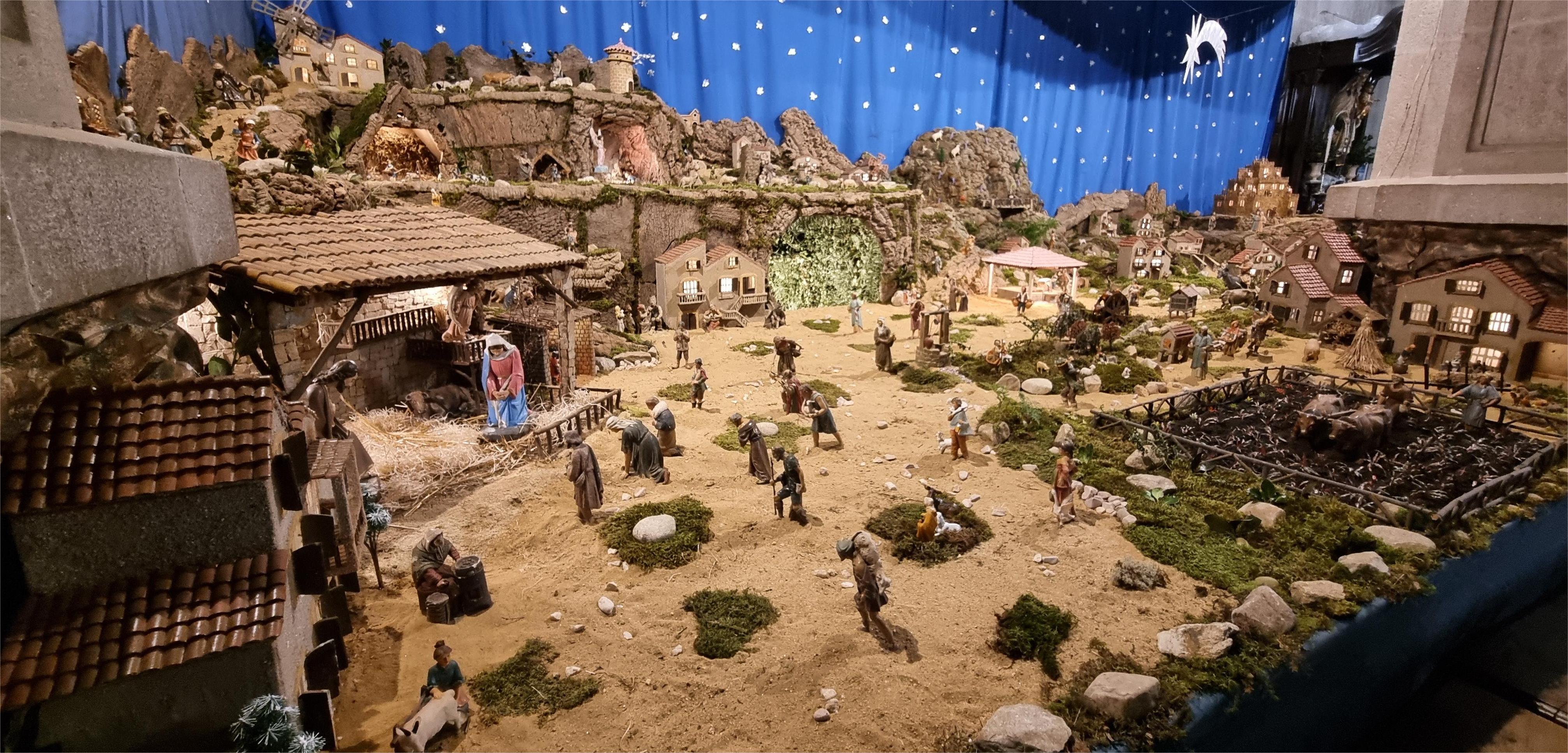 No le falta detalle al “Nacimiento de Belén” del Nuevo Templo donde un equipo de feligreses, como en años anteriores y mejorando e innovando detalles de la escena en cada montaje, ha trabajado semanas en su construcción y montaje que, como siempre, llama mucho la atención de pequeños y mayores al observar sus figuras y sus movimientos de aparatos incluidos en el montaje así como el agua corriente y los molinos que giran en diversos puntos del Belén.