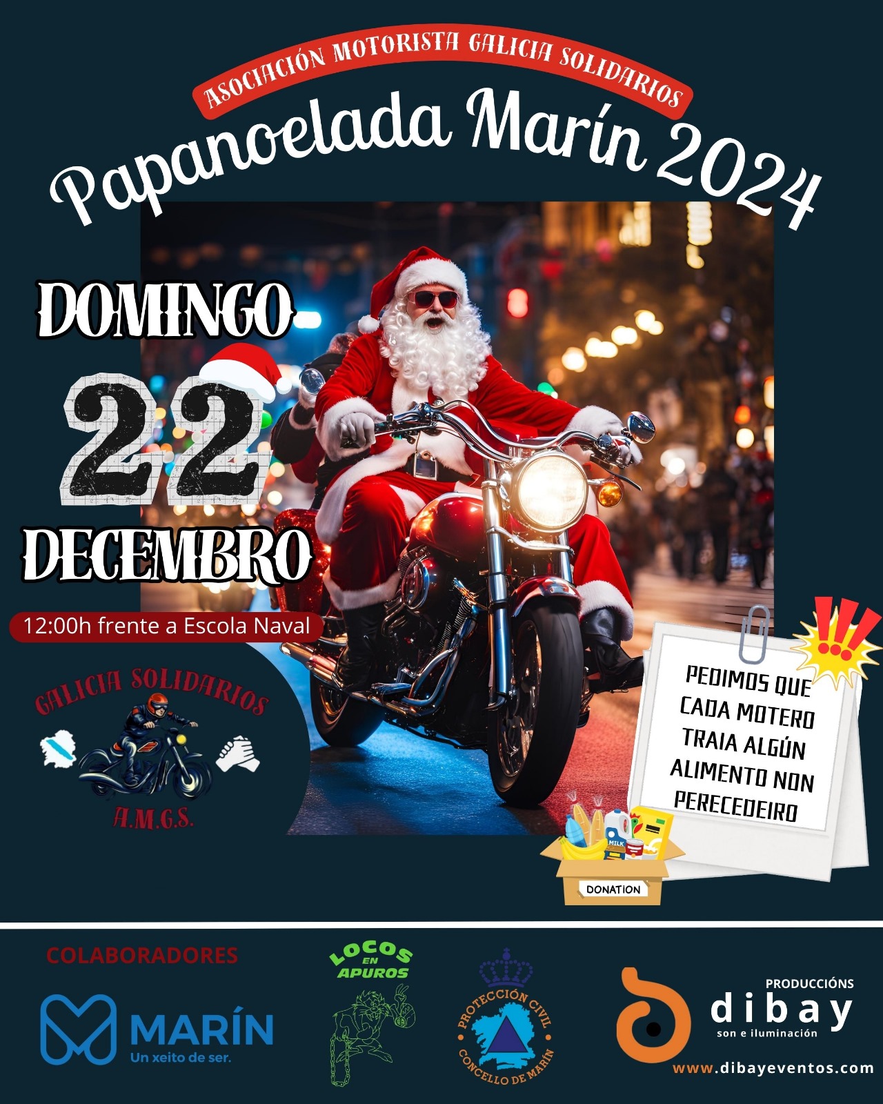 La presencia de los moteros es ya una autèntica tradición cada navidad habiendo años que se reúnen un enorme número de ellos procedentes de toda Galicia lo que ofrece una estampa muy singular en la programación marinense.