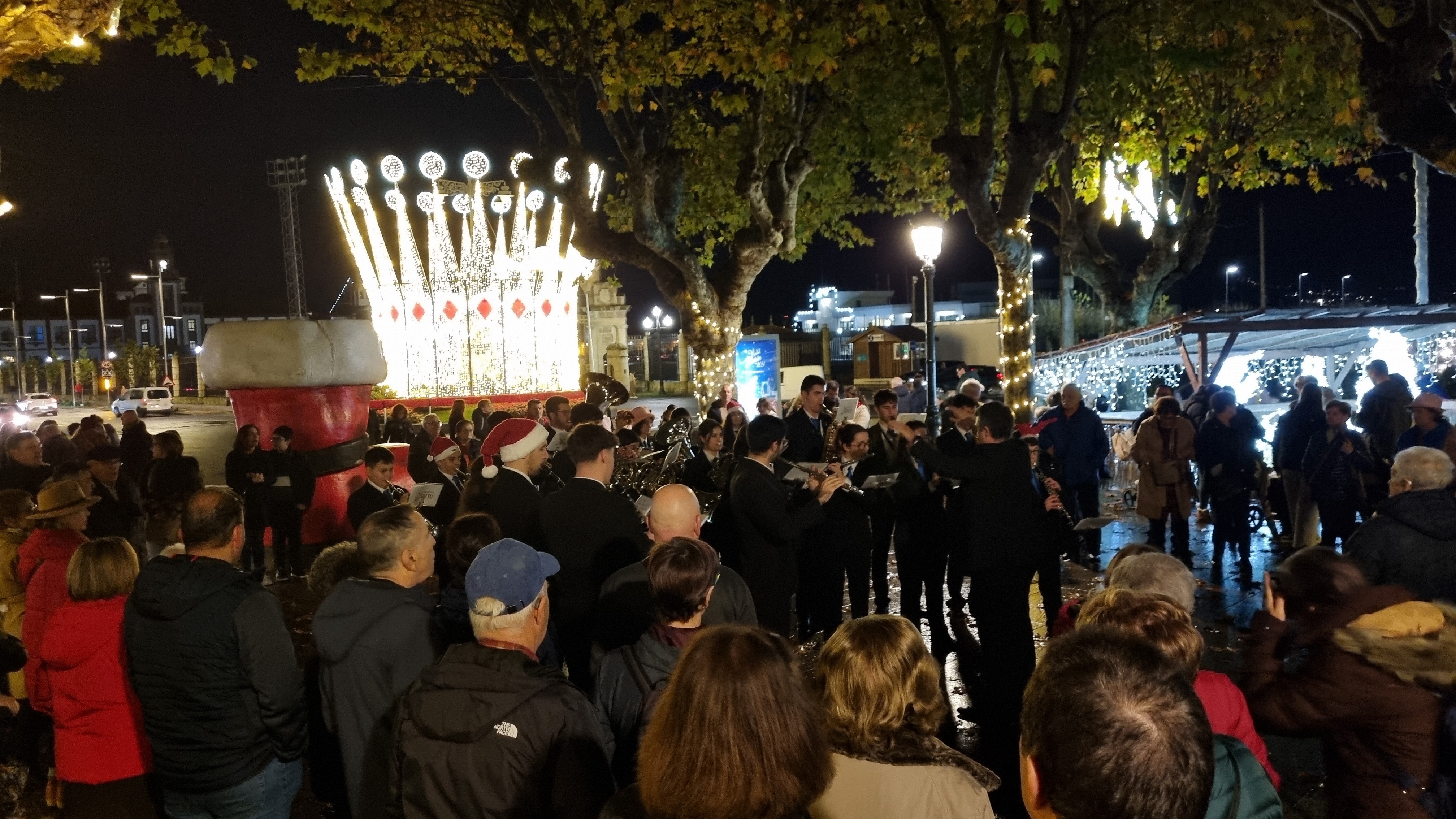 Mientras tanto tomó el relevo la Banda de Música de Marín que interpretó varios villancicos como corresponde a las fiestas que se iniciaban y una buena parte del público se dispersó para acudir al