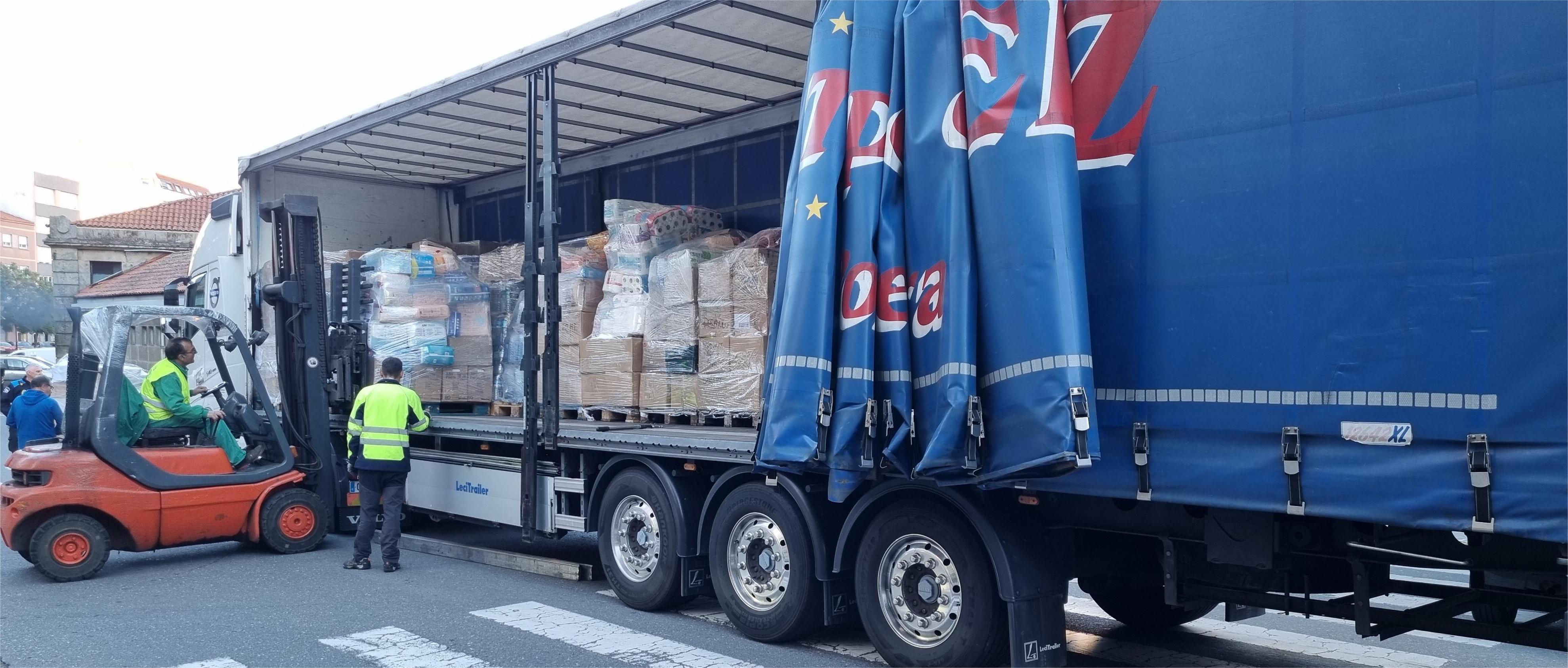 Espectacular fue ayer el acto de la carga del enorme camión que ya viaja hacia Valencia para entregar el contenido de alimentos, ropa y enseres que donaron los marinenses y los vecinos de Poio en una operación conjunta de los dos ayuntamientos. De Marín salieron 21 palets apretados con productos de primera necesidad debidamente clasificados y empaquetados por voluntarios que colaboraron con el Concello durante varios días incluido un contingente de alumnos de la Escuela Naval Militar que respondieron a la llamada de colaboración dado que el trabajo era mucho y se necesitaban manos y energía.