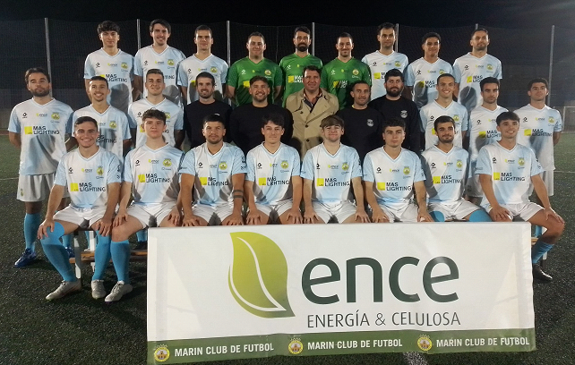 Marín Club de Fútbol : Cristian ; Hergen ( Darió Ferradás , min. 76 ) , Javi Mariño , Aitor Díaz , Pablo Portas ; David Vázquez ( Diego Justo , min. 73 ) , Antón Vázquez , Pedro Espiña ; Leni ( Iago Pastoriza , min. 46 ) , Dani Taracido y Guille .