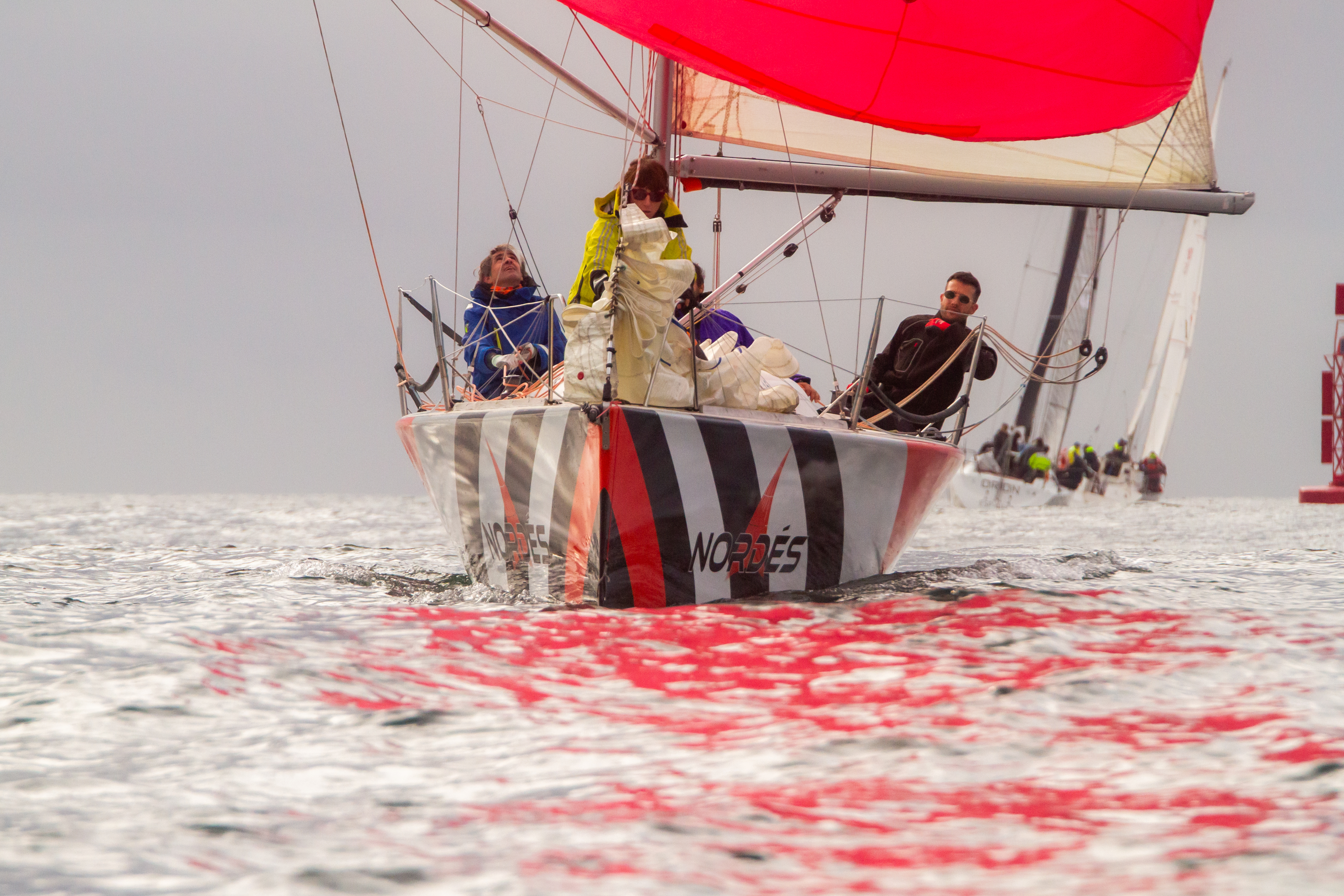 La salida del primer barco se hizo a las 16:00 horas para realizar uno de los recorridos previstos más cortos, el de 7,35 millas que les llevó desde la salida frente al club en la baliza de Os Pelados hasta la baliza de Morrazán en el centro de la ría y a continuación virando también la baliza emisario de Tambo y finalizando en el mismo lugar donde se dio la salida frente al club.