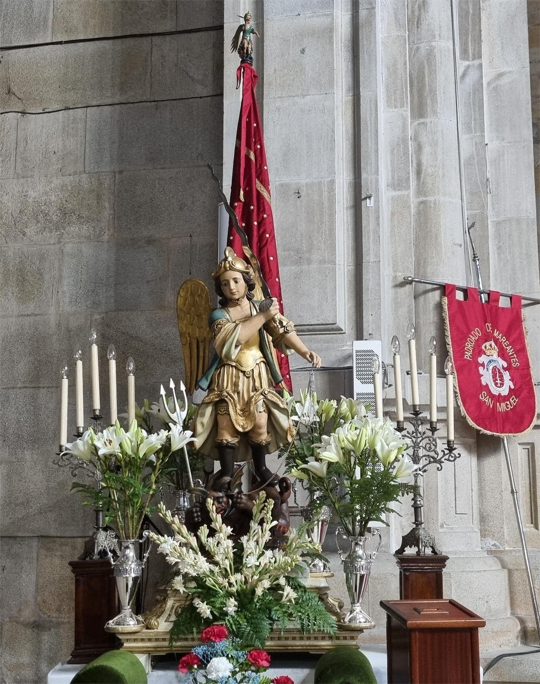 Parroquia, Ateneo Santa Cecilia y Concello de Marín, aúnan los esfuerzos para celebrar la fiesta religiosa más tradicional de cuantas hay en Marín y no es otra que el día de San Miguel, Patrón de los Mareantes, cuyo origen se pierde en cientos de años atrás habiendo sido recuperada en varias ocasiones por los propios marineros, por la Sección Femenina de los años sesenta y por el Ateneo Santa Cecilia en cuyo seno derivó a una fiesta puramente juvenil que pretende mantener si no la esencia de su génesis, sí la tradición de la celebración ya que en los últimos años son más de un centenar de personas, mujeres y hombres de todas las edades que, en distintos grupos, danzan al son de las gaitas en las distintas plazas de Marín ante la imagen del Arcángel, una talla que tiene también solera en nuestra parroquia.