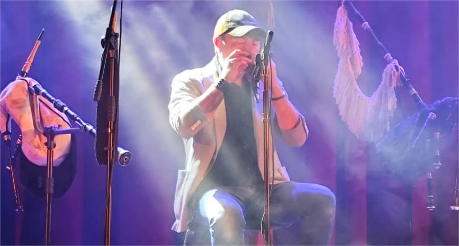 Lorenzo y sus compañeros hicieron un recorrido musical por sus propias creaciones en un mágico ambiente a lo que la aportación técnica de sonido e iluminación de Dibay Eventos, dio un especial ambiente, y durante más de una hora, sin la menor laguna de tiempo, fue desgranando pieza a pieza su maestría y la virtuosidad de su interpretación a lo que contribuyeron Jorge Juncal (Wöyza & The Galician Messengers, Faltriqueira) y José Stewart (Sonus de Gaia, The Great Game) con sintetizadores y batería junto al excepcional violinista Eoghan Neff, formando un cuarteto de emocionante incidencia a la música tradicional pero con nuevas perspectivas y aportando sensaciones novedosas al espectador que, finalizada la actuación premió con fuertes aplausos al cuarteto y de forma especial a Anxo Lorezo al que le cabe el orgullo de haber pertenecido en algún tiempo de sus inicios al grupo de “Os Chaneiros” y así lo expresó ante la numerosa audiencia presente en el acto