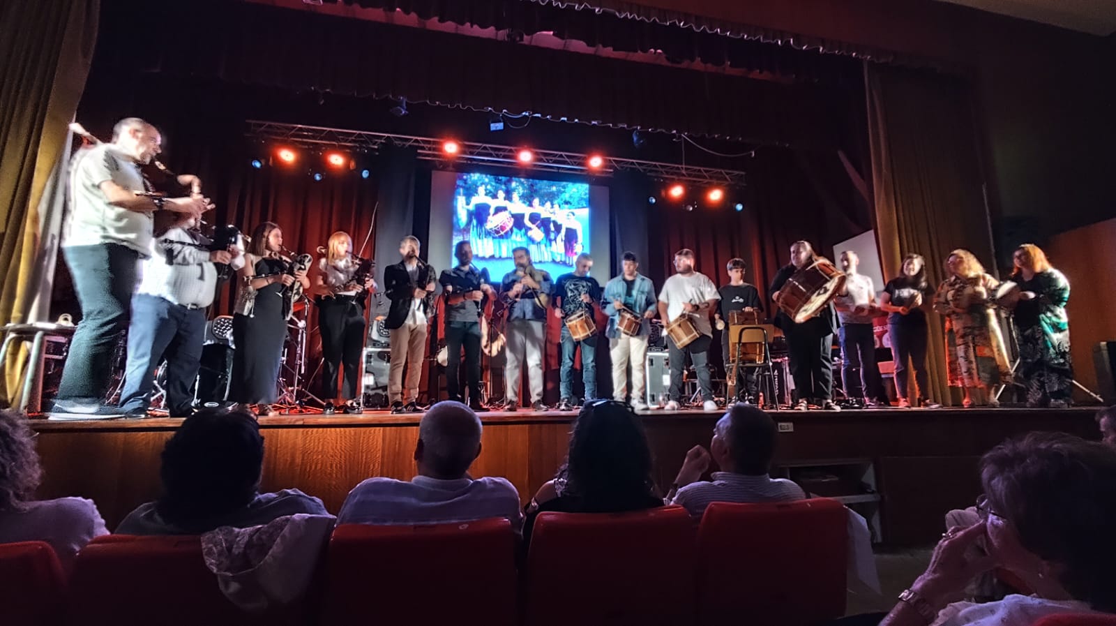 El paraninfo del Colegio San Narciso acogió en la tarde-noche del pasado sábado un sorprendente concierto del gaiteiro Anxo Lorenzo y su banda “EOGHANXO” que puso fin al acto celebrado en dicho recinto con asistencia de numerosas personas muchas de ellas antiguos componentes del grupo folclórico “Os Chaneiros” fundado por Marino Domínguez Chantrero, el “Padre Marino”, paúl de la congregación que regía dicho centro escolar allá por los principios de la década de los años setenta del pasado siglo.