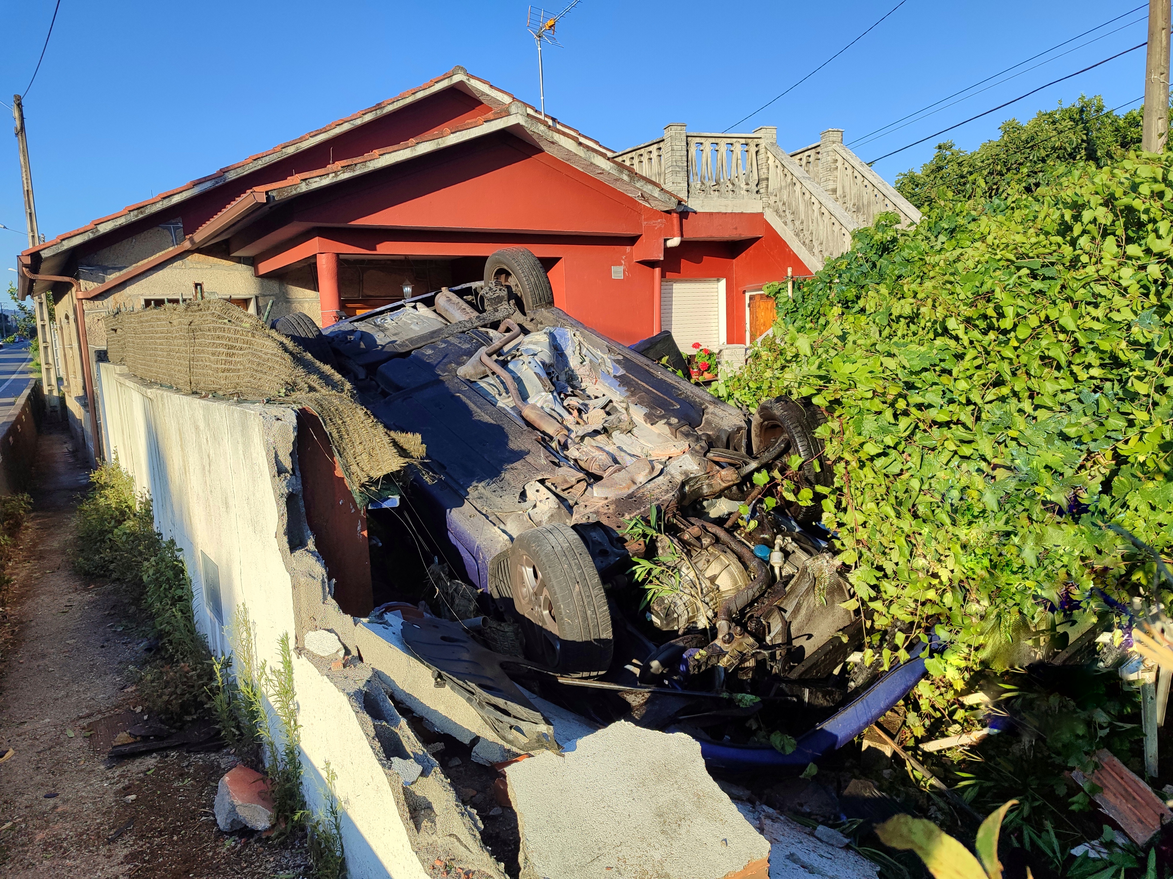 Un aparatoso accidente ocurrió esta madrugada, poco antes de las seis de la mañana, según pudo saber Carriola de Marín, cuando un vehículo turismo en el que viajaban cuatro personas jóvenes en sentido hacia Bueu, según las fuentes consultadas por esta página, tras subir por el guardarraíl y romper el muro acabó en el interior de una finca sin que podamos determinar las causas aunque sí podamos dejar constancia de los destrozos tanto en el muro y el interior de la finca y también del vehículo, del cual al menos dos ocupantes han sido evacuados al Hospital Montecelo como consecuencia de las heridas sufridas y de las que intentaremos obtener mayor información.