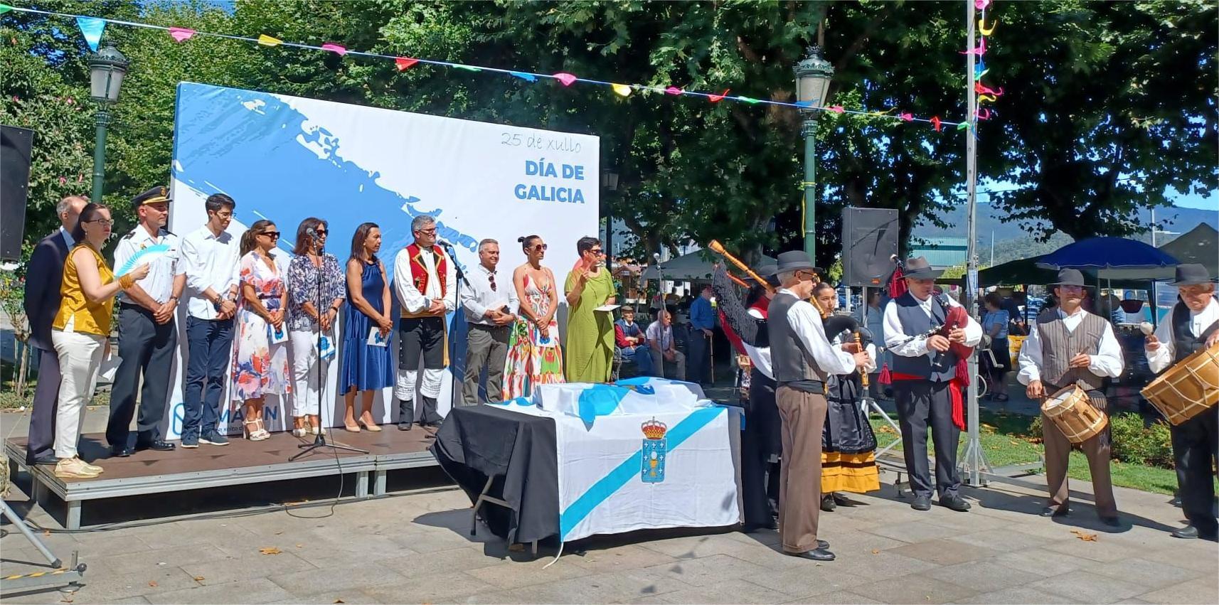 La alcaldesa de Marín, María Ramallo, junto con varios miembros del grupo de gobierno y corporación, presidió ayer la celebración del Día de Galicia que se celebró en la Alameda Rosalía de Castro. Por la mañana se llevaron a cabo los actos propiamente institucionales y, el resto del día, se celebró la veterana “Romería de Trompos ós Pes” con veinticinco años de antigüedad que sigue creciendo cada año en oferta y participación general de puestos de venta y de clientes y curiosos que los recorren el la búsqueda de los artículos más significativos que en ellos se ofrecen.