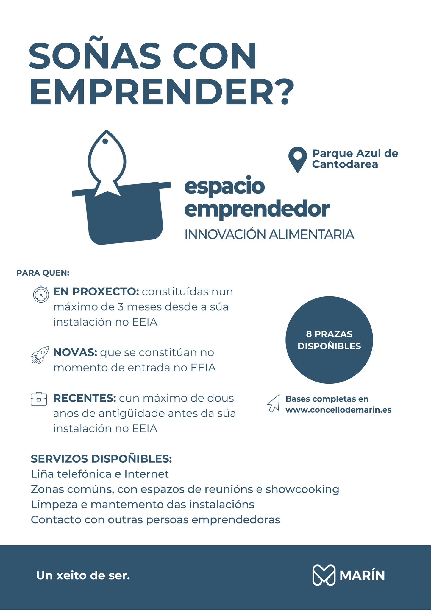 OBXECTO As presentes Bases teñen por obxecto a regulación do funcionamento do Espazo Emprendedor de Innovación Alimentaria (en adiante, EEIA) do Concello de Marín, establecendo o procedemento de adxudicación de espazos, a relación entre os cesionarios e o órgano de xestión do EEIA, a normativa de réxime interno, e o réxime económico.