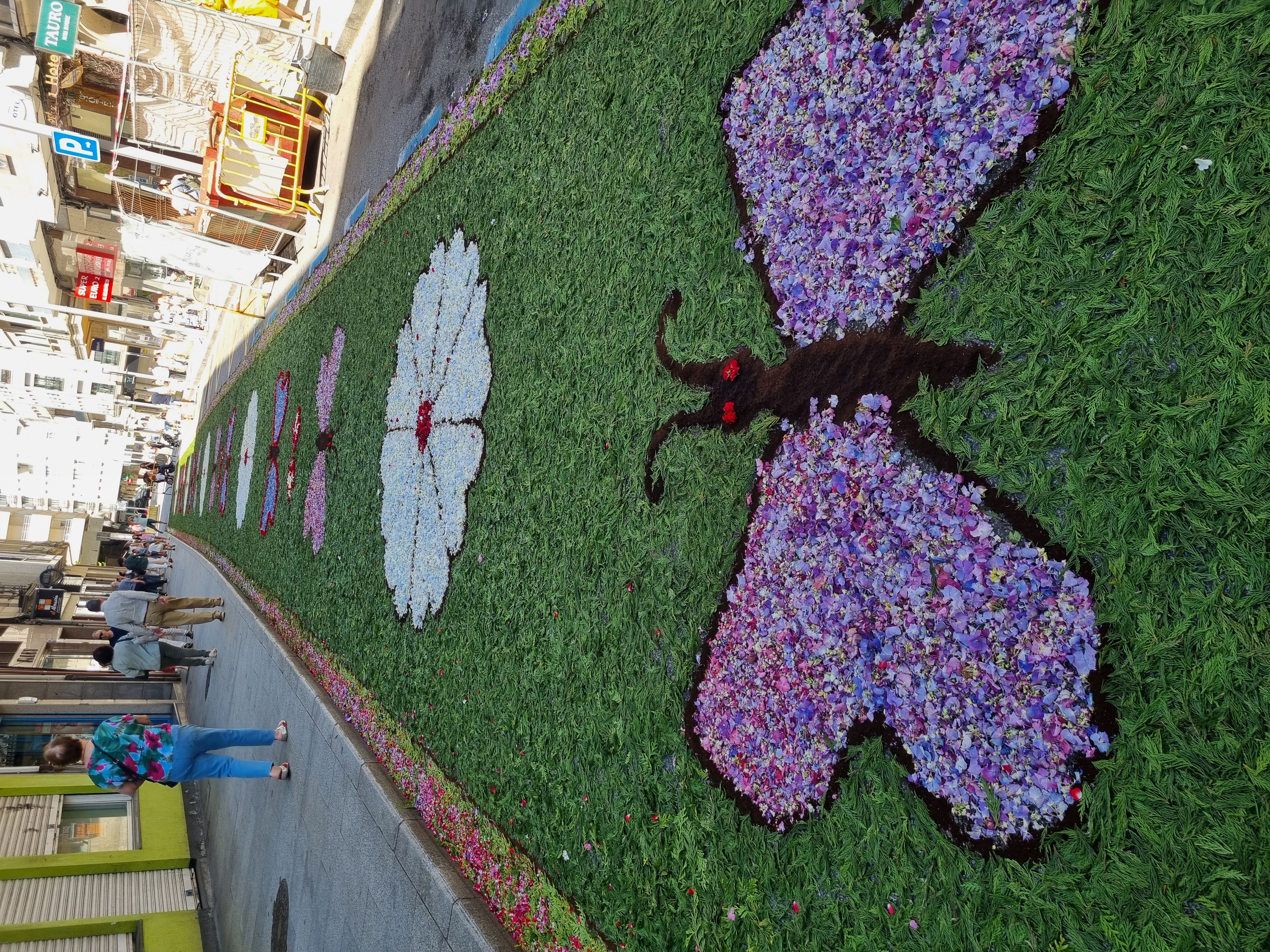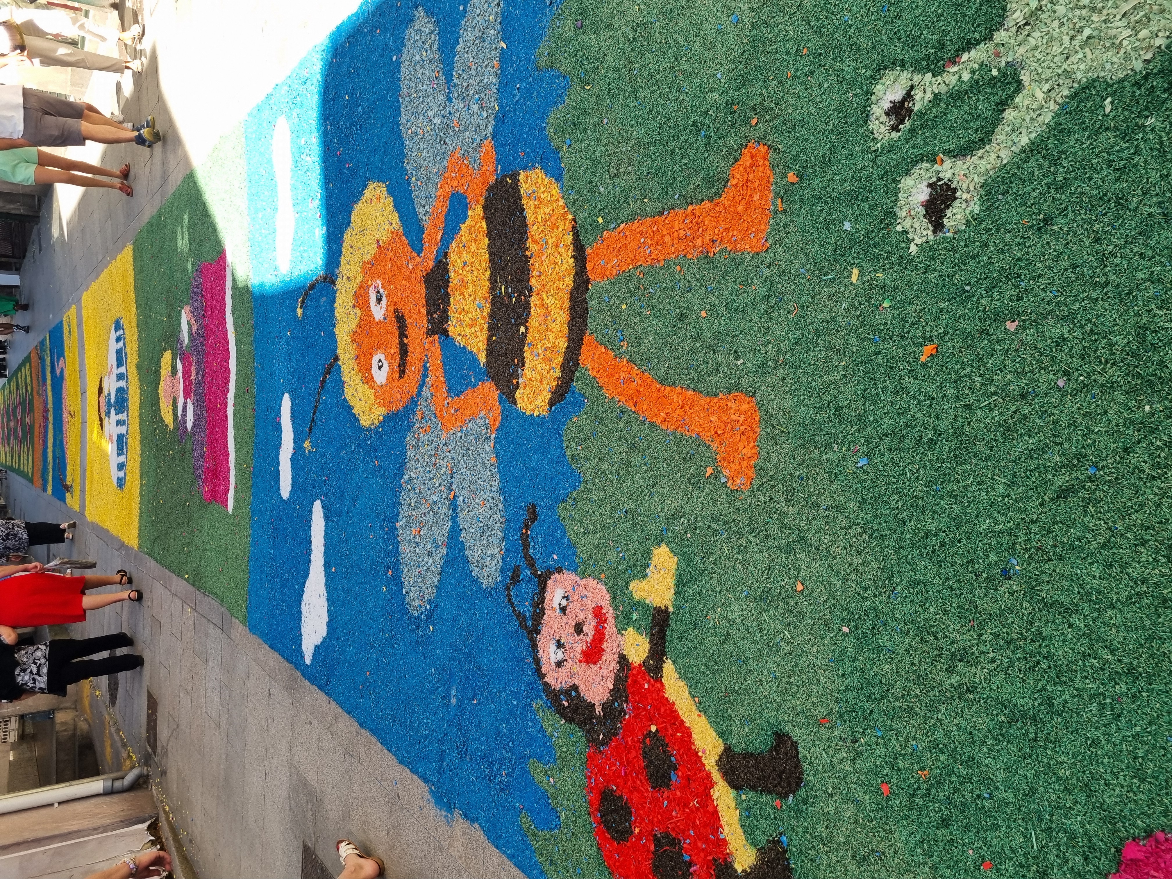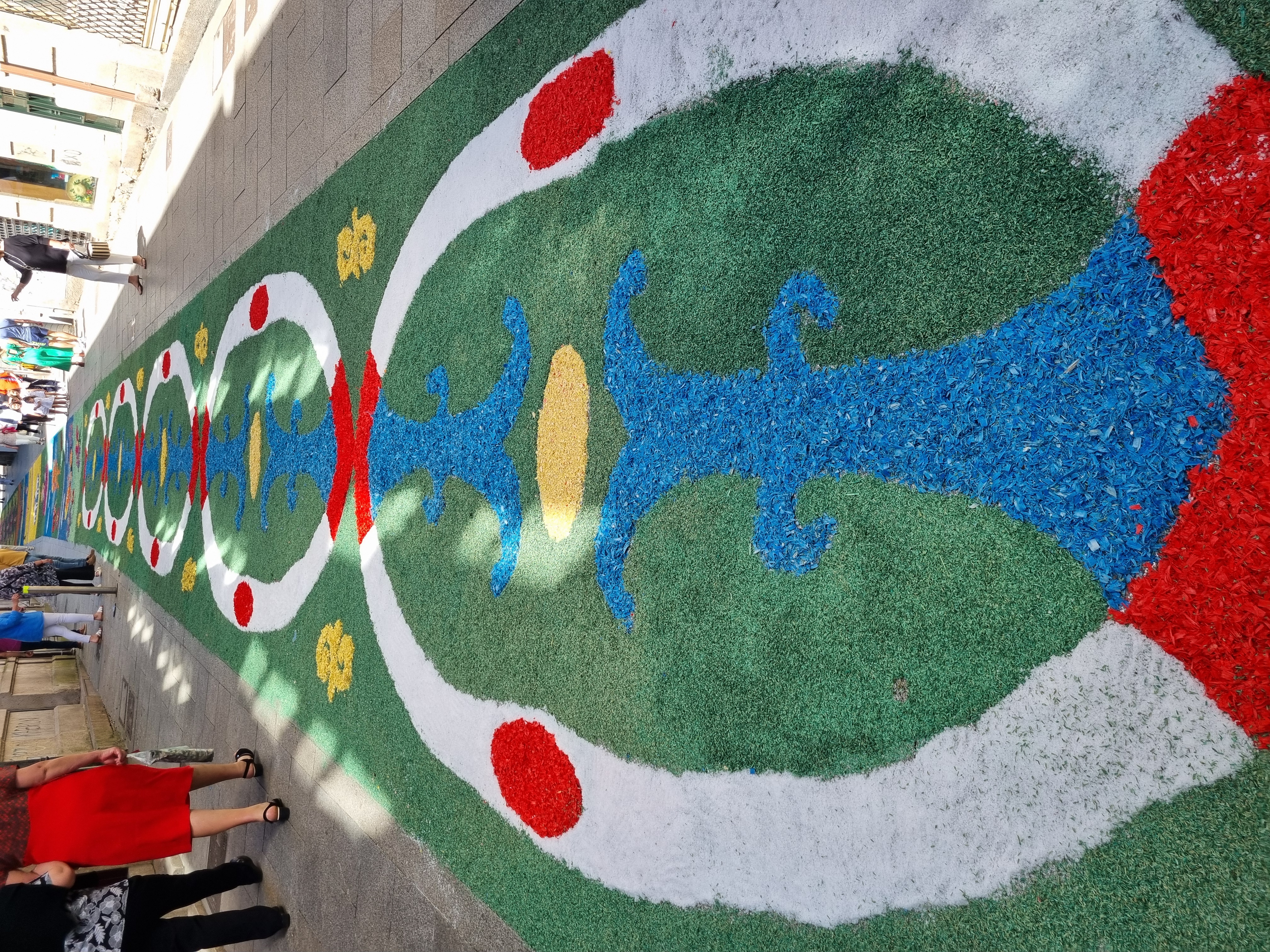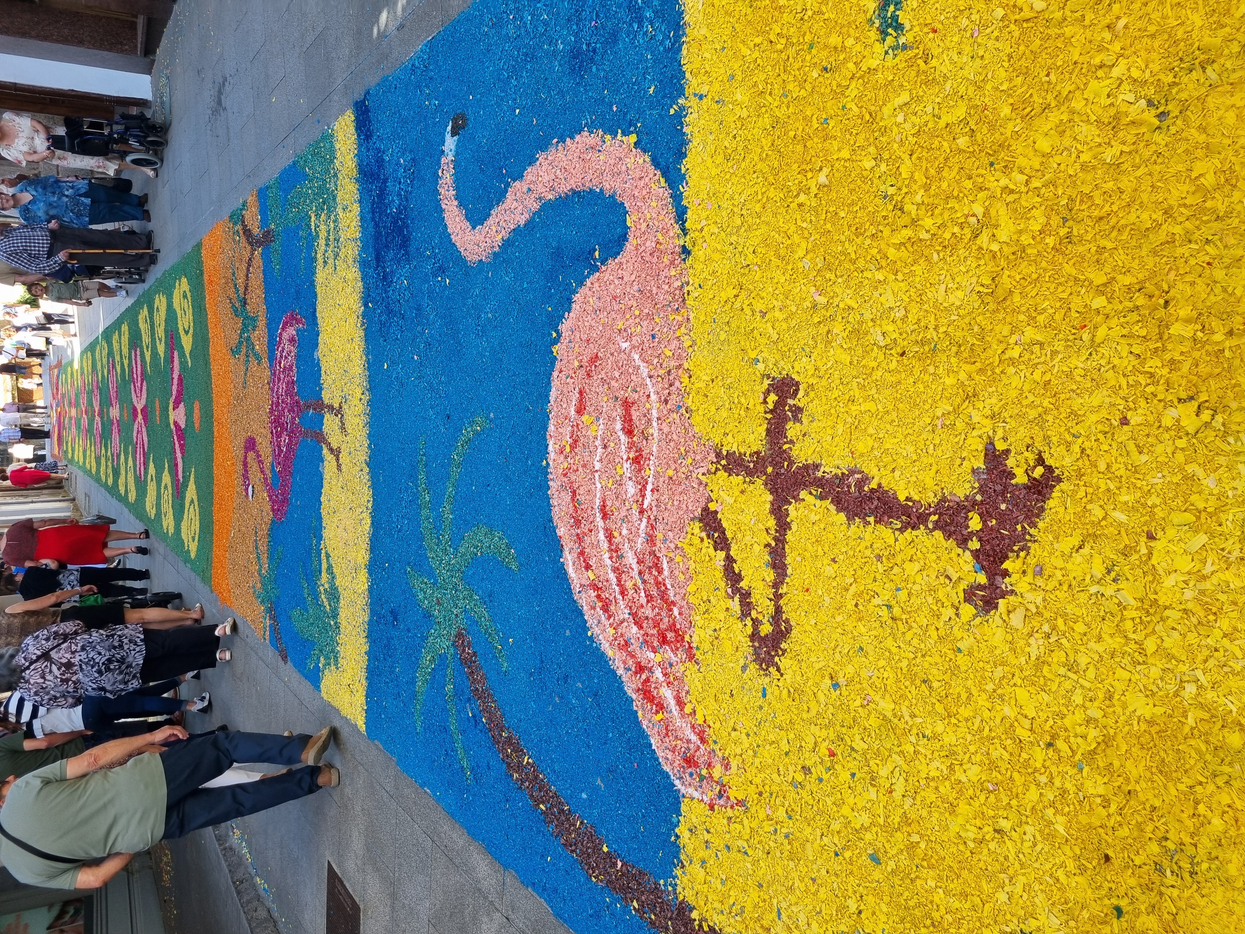 A contiuación reproducimos imàgenes del precioso alfombrado, efímera obra que desaparece a los pocosminutos de cumplir su sagrada misión.