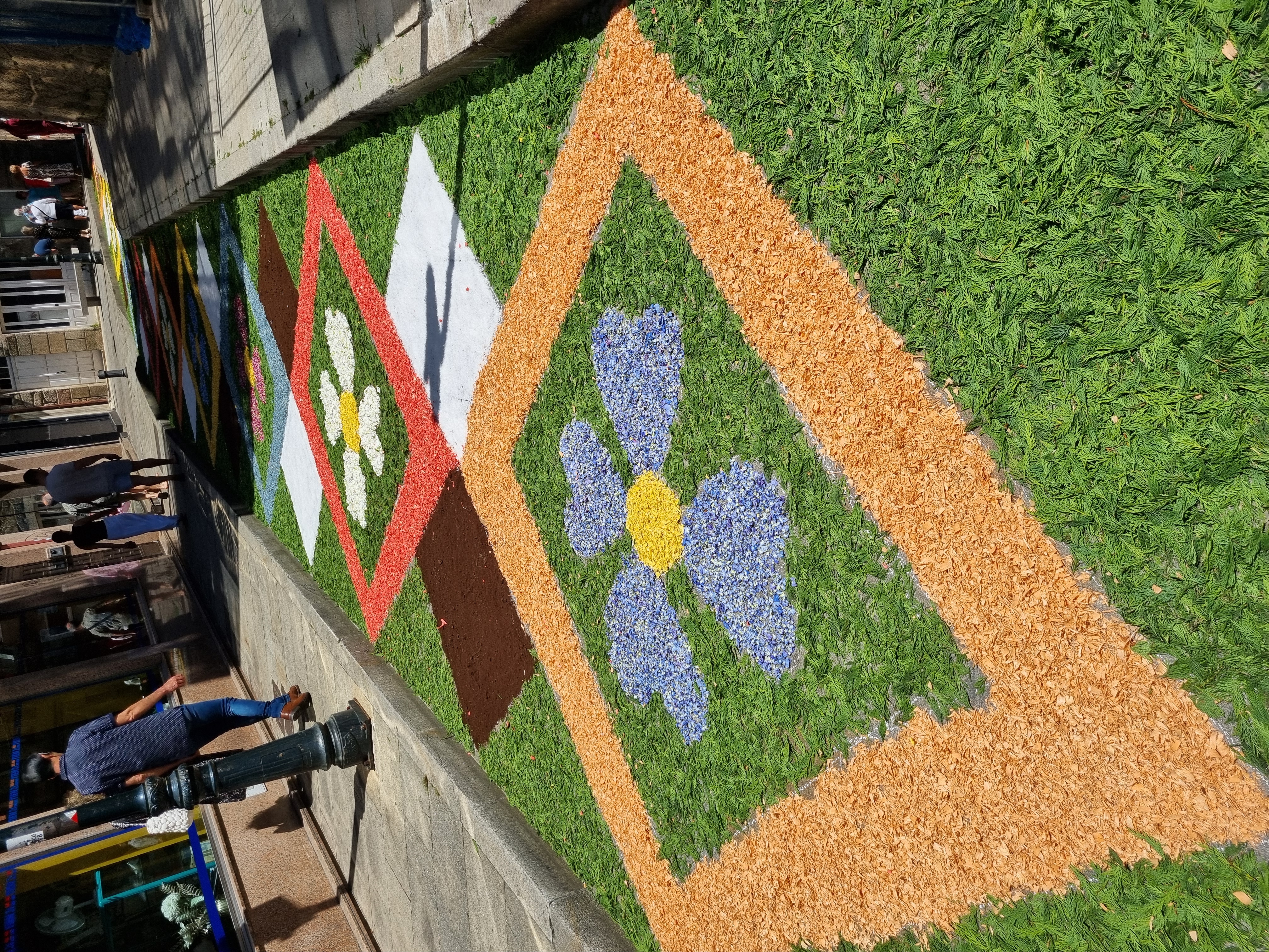 Con las primeras luces del día empezó a lucir el arte que los grupos vecinales pusieron en la confección de las alfombras por las que poco después pasaría la procesión del Santísimo con todos sus acompañantes. Desde el Nuevo al Antiguo Templo era toda una alfombra continuada aunque con diversos y vistosos motivos según los tramos de las calles Concepción Arenal, Jaime Janer, Rúa Real, Plaza del Reloj y Echegaray, alfombrado que durante las horas previas a la procesión fue visitado y elogiado por multitud de personas que hicieron el recorrido tomando numerosas fotos de los coloristas motivos expuestos.