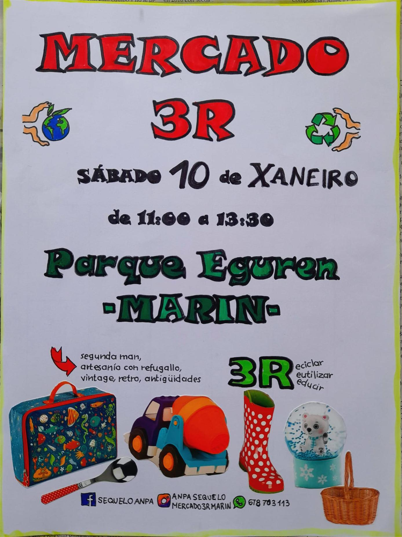 Comienza un nuevo año y continúa la actividad ocasional del “Mercado 3R” que frecuentemente utiliza el Parque Eguren para ofrecer una potabilidad de dar una segunda vida a artículos diversos a la vez que se beneficia a colectivo de alumn@s apoyando sus actividades