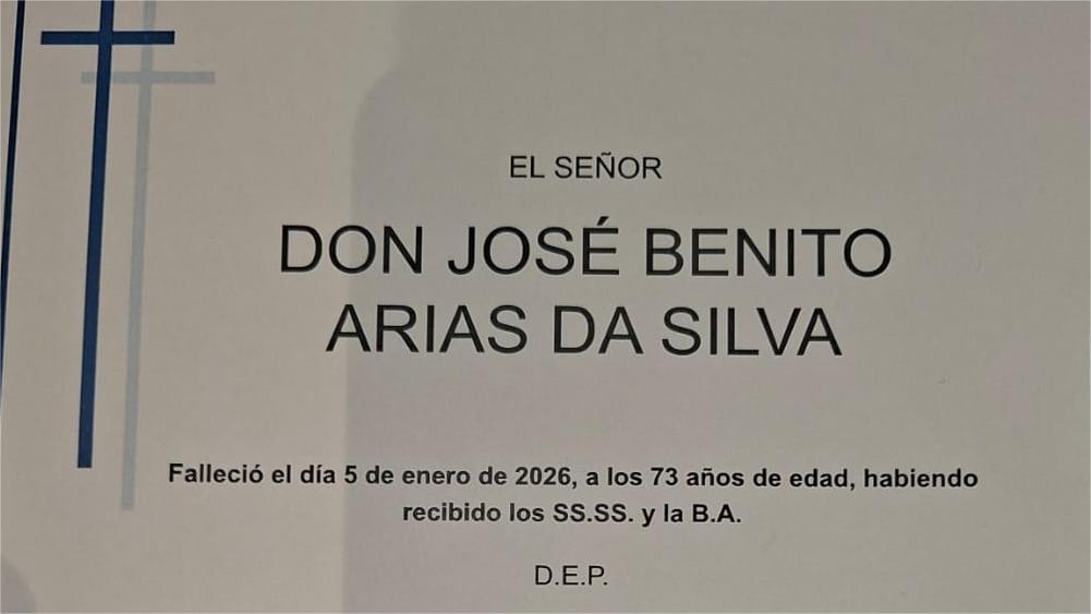 La funeraria ALBIA comunica el fallecimiento ayer, día 5 de enero, de Don JOSÉ BENITO ARIAS DA SILVA cuyos restos mortales permanecerán en la sala de velaciones del tanatorio de Poio hasta el momento de su traslado, HOY MARTES día 6 a las CUATRO Y MEDIA de la tarde para su inhumación en el cementerio municipal de Campañó