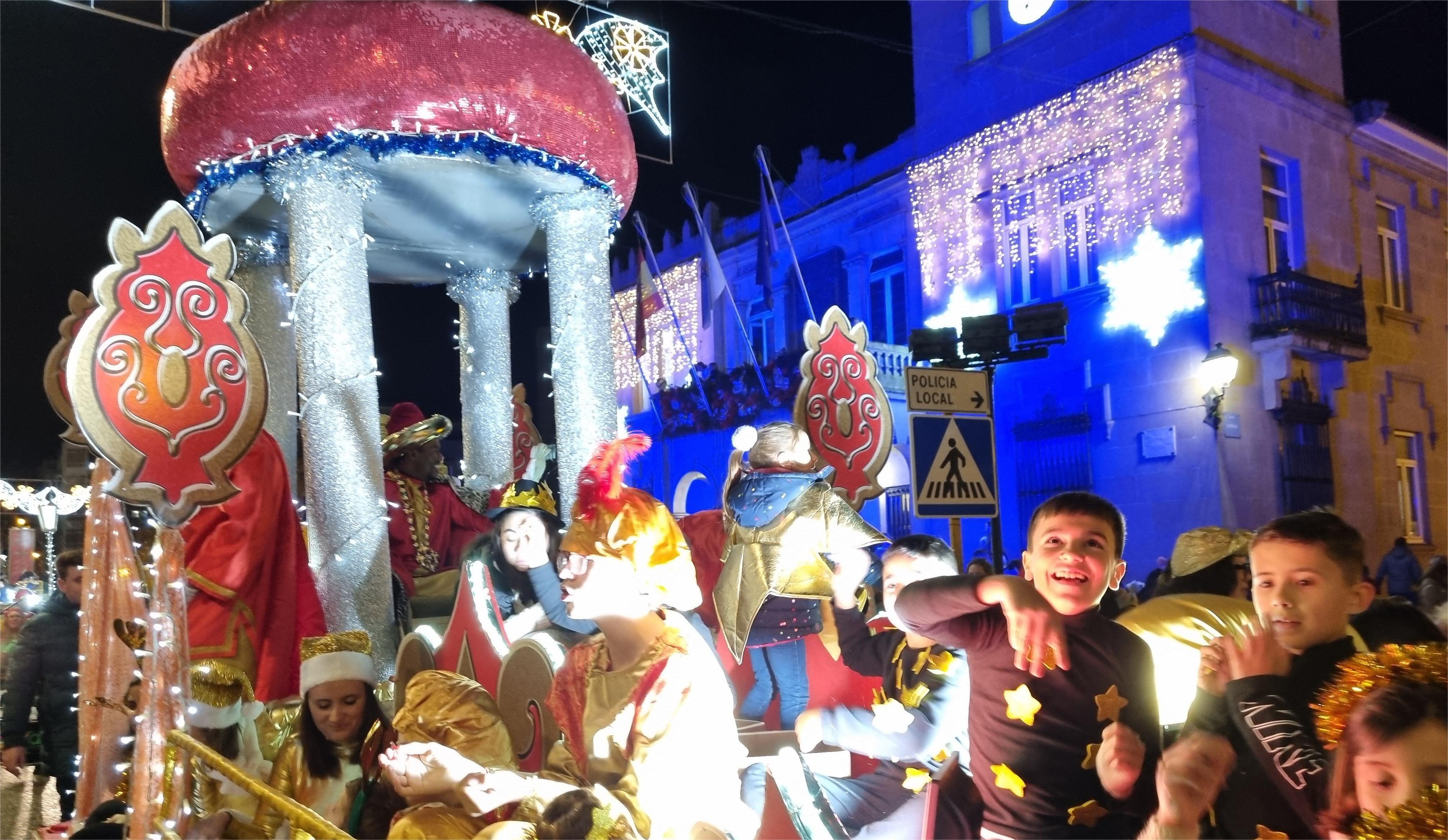 Los Reyes Magos cumplieron un año más su compromiso con los niños y niñas de Marín acudiendo ayer a esta villa que les esperaba con mucha ilusión y les vio desfilar en las carrozas de la Cabalgata a lo largo de todo el recorrido