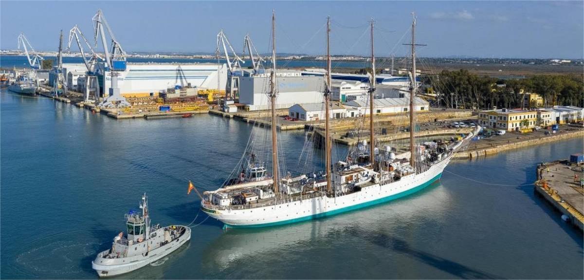 Durante su estancia en la factoría gaditana, la unidad de negocio de Reparaciones de Navantia en la Bahía de Cádiz ha acometido una puesta a punto profunda de las estructuras y sistemas vitales del velero. Entre las actuaciones realizadas figuran la renovación de jarcias, la puesta a punto de los palos mayor proel y mayor popel, la sustitución completa de la planta de aire acondicionado y de la planta de tratamiento de aguas residuales, así como la renovación del tranvía de mayor popel y la reestructuración de los camarotes de suboficiales en proa, labores todas ellas orientadas a alargar la vida útil de un buque próximo a su primer siglo en la mar.