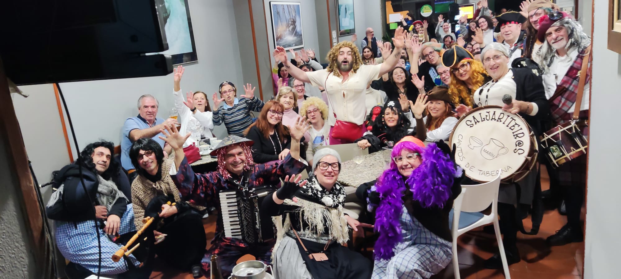 Benito Salgado, uno de los coordinadores del grupo marinense se congratula de que por in empieza a calar en el vecindario que el carnaval es algo vivo que no se puede comprimir en un par de desfiles de disfraces y en el Enterro da Sardiña, sino que hay que vivirlo desde el primer momento con disfraces y buen humor y entiende que se va consiguiendo ya que durante la jornada de cantos de taberna, muchas personas que les acompañaron sí aparecieron con disfraces lo que genera un ambiente especial de Entroido. Salgado, que procede de tierras del interior donde se vive con intensidad el carnaval, confía en que cada vez más Marín vaya aceptando esa necesidad o conveniencia de una mayor participación vecinal en todos los actos del carnaval.