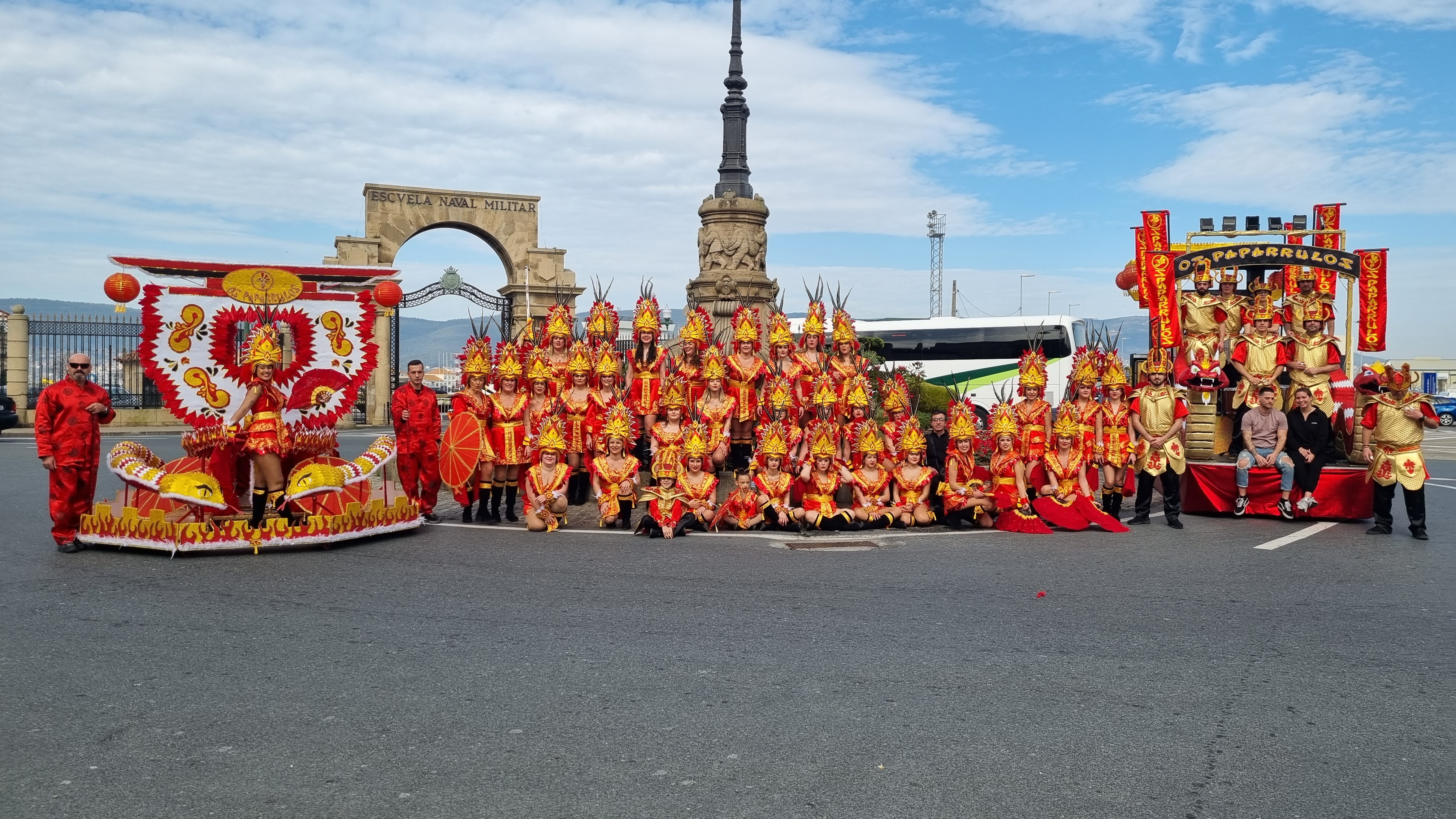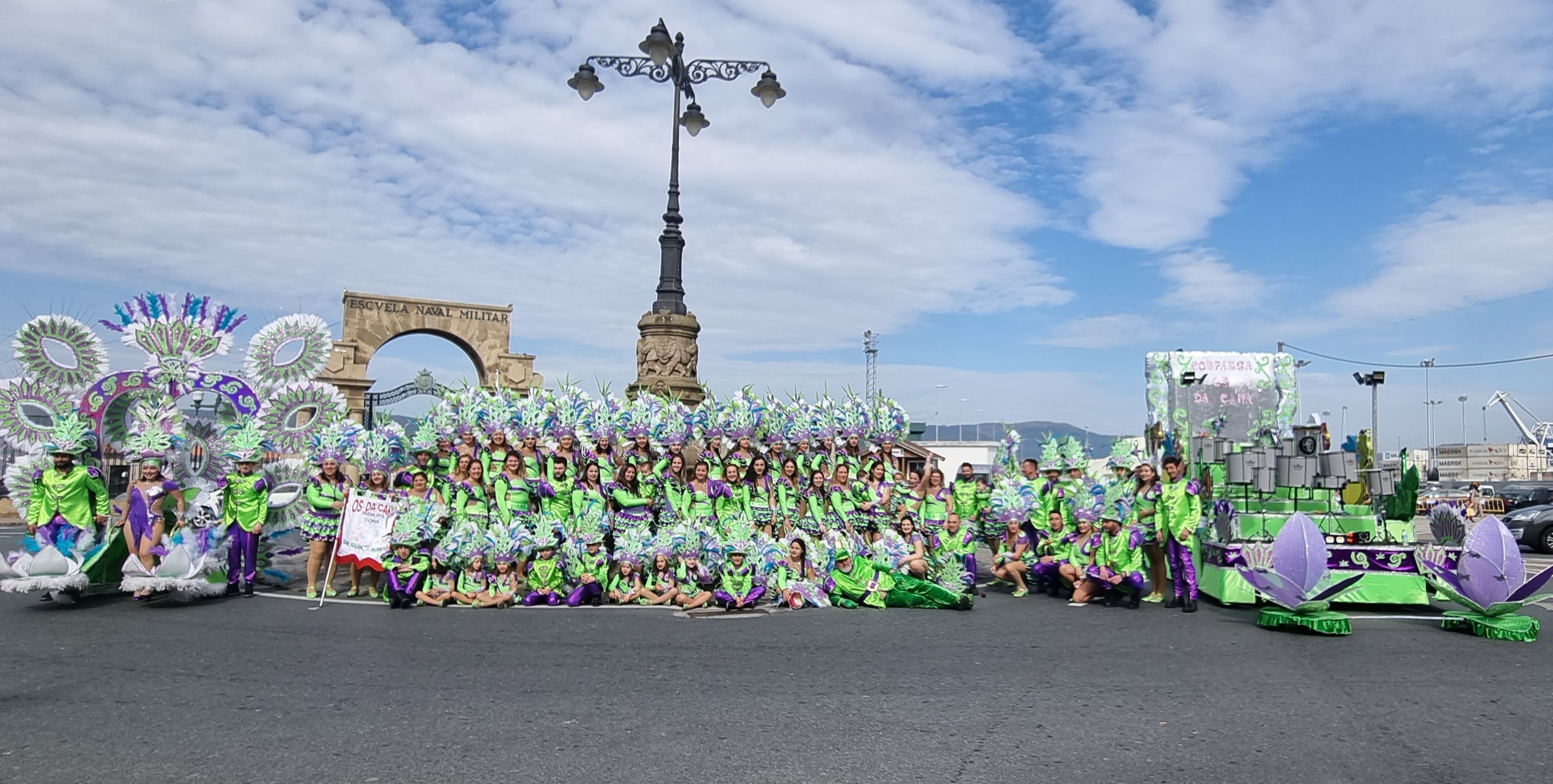 Tras el minidesfile ambos grupos finalizaron la mañana haciéndose la foto de rigor en la farola de la Plaza de España acompañados de sus carrozas como se viene haciendo desde muchos años atràs con toas las agrupaciones que participan en el carnaval marinense.